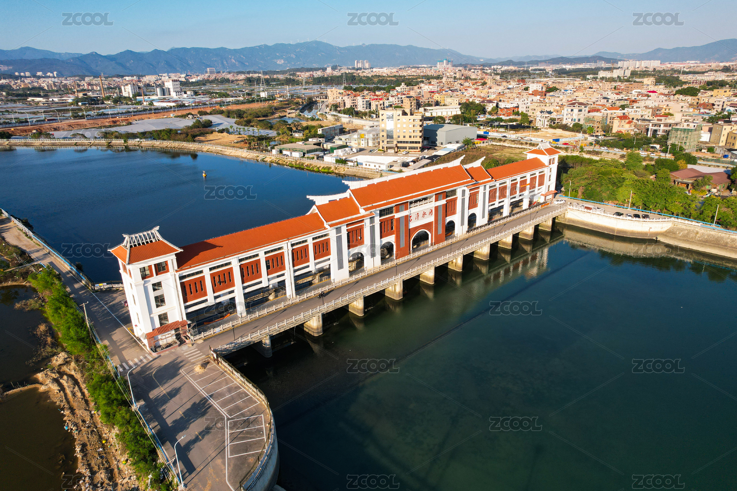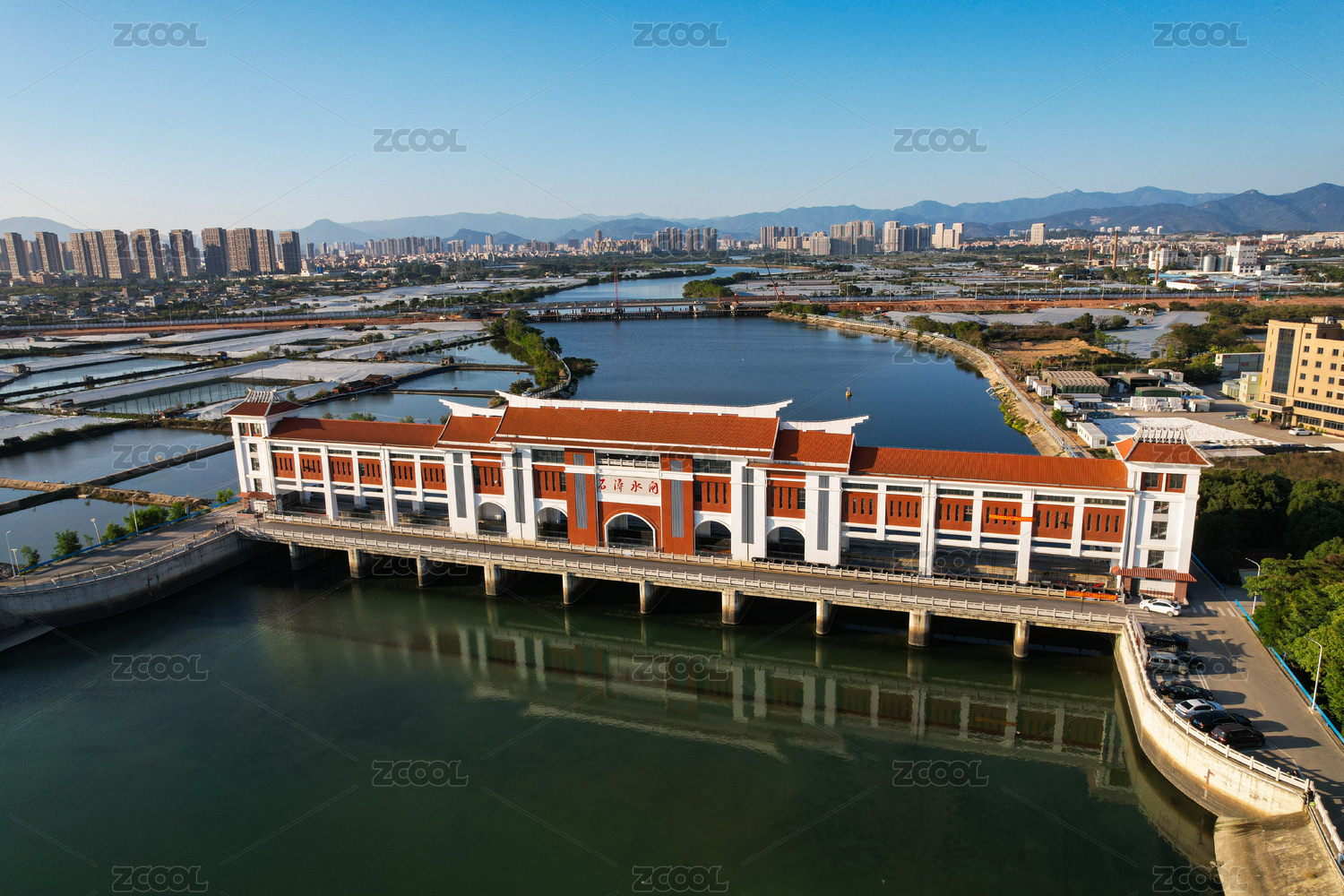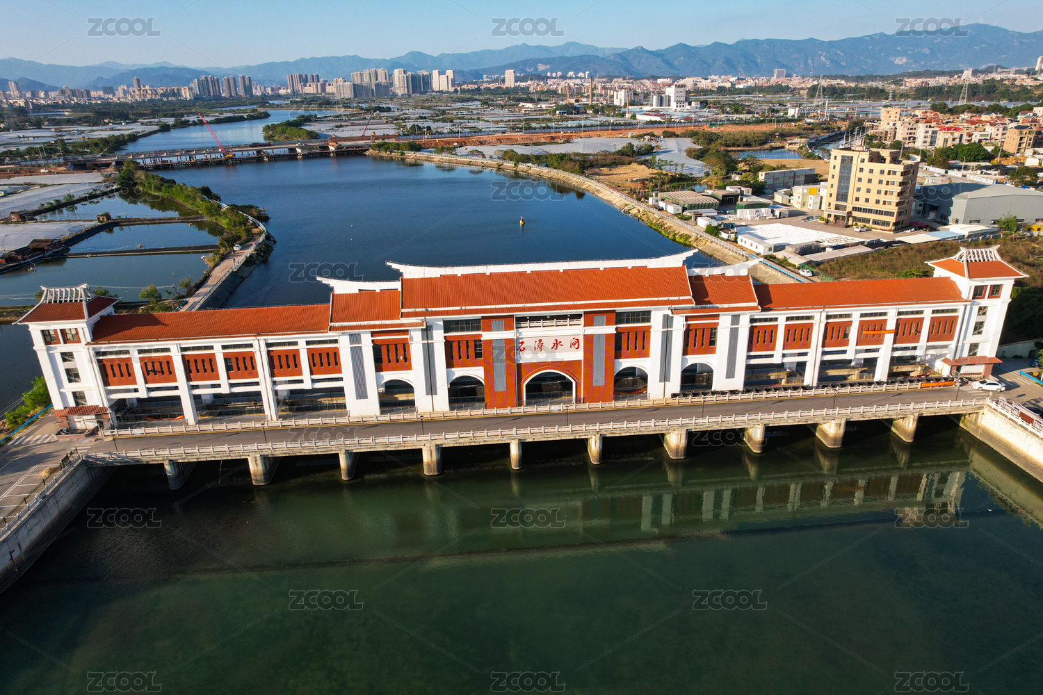 航拍水閘建筑景觀