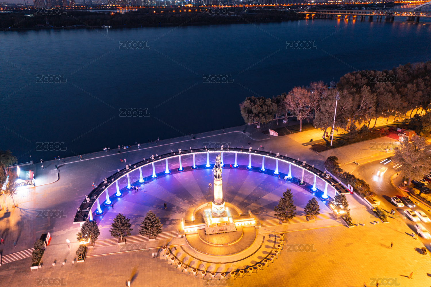 哈爾濱防洪勝利紀(jì)念塔廣場夜景