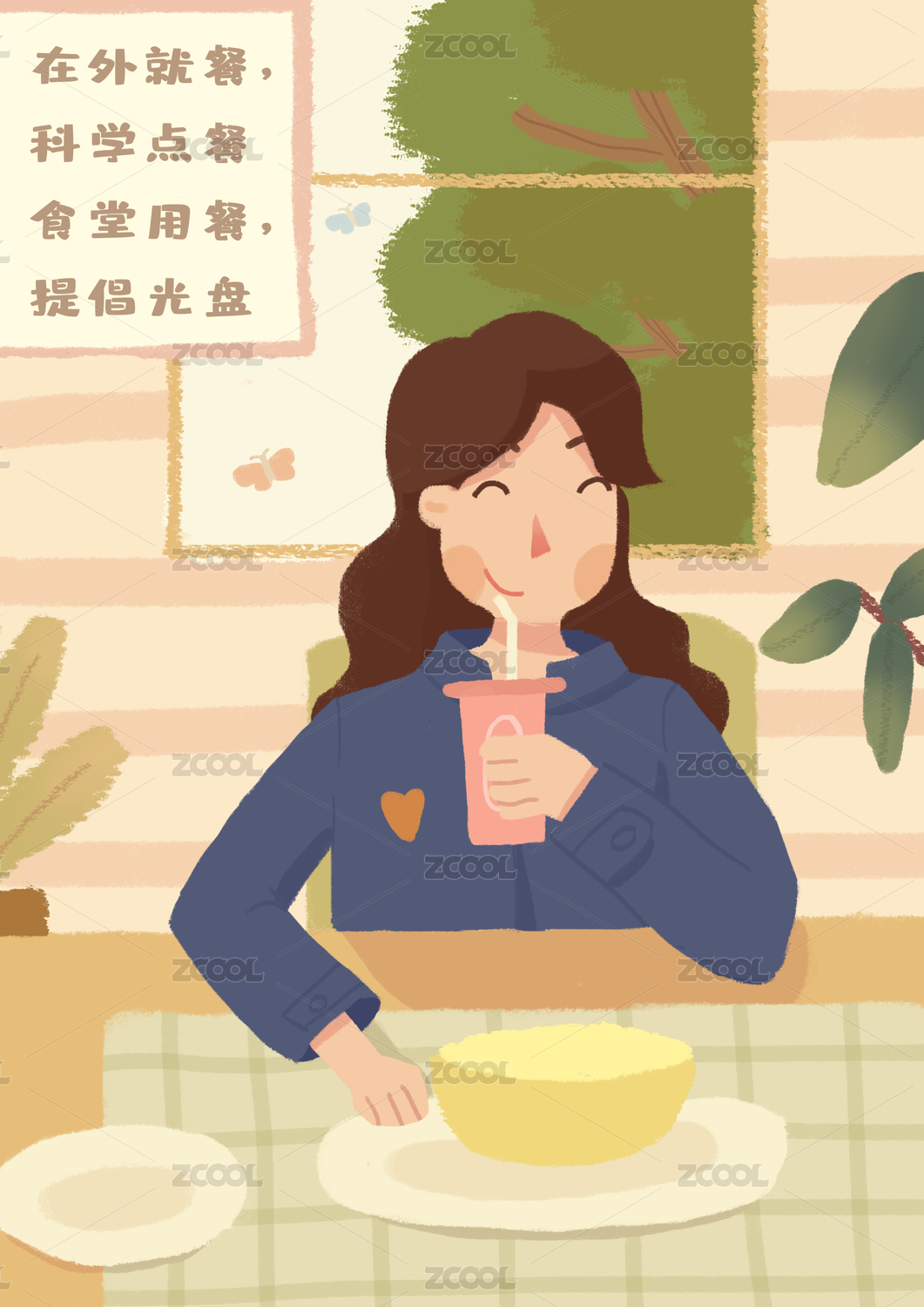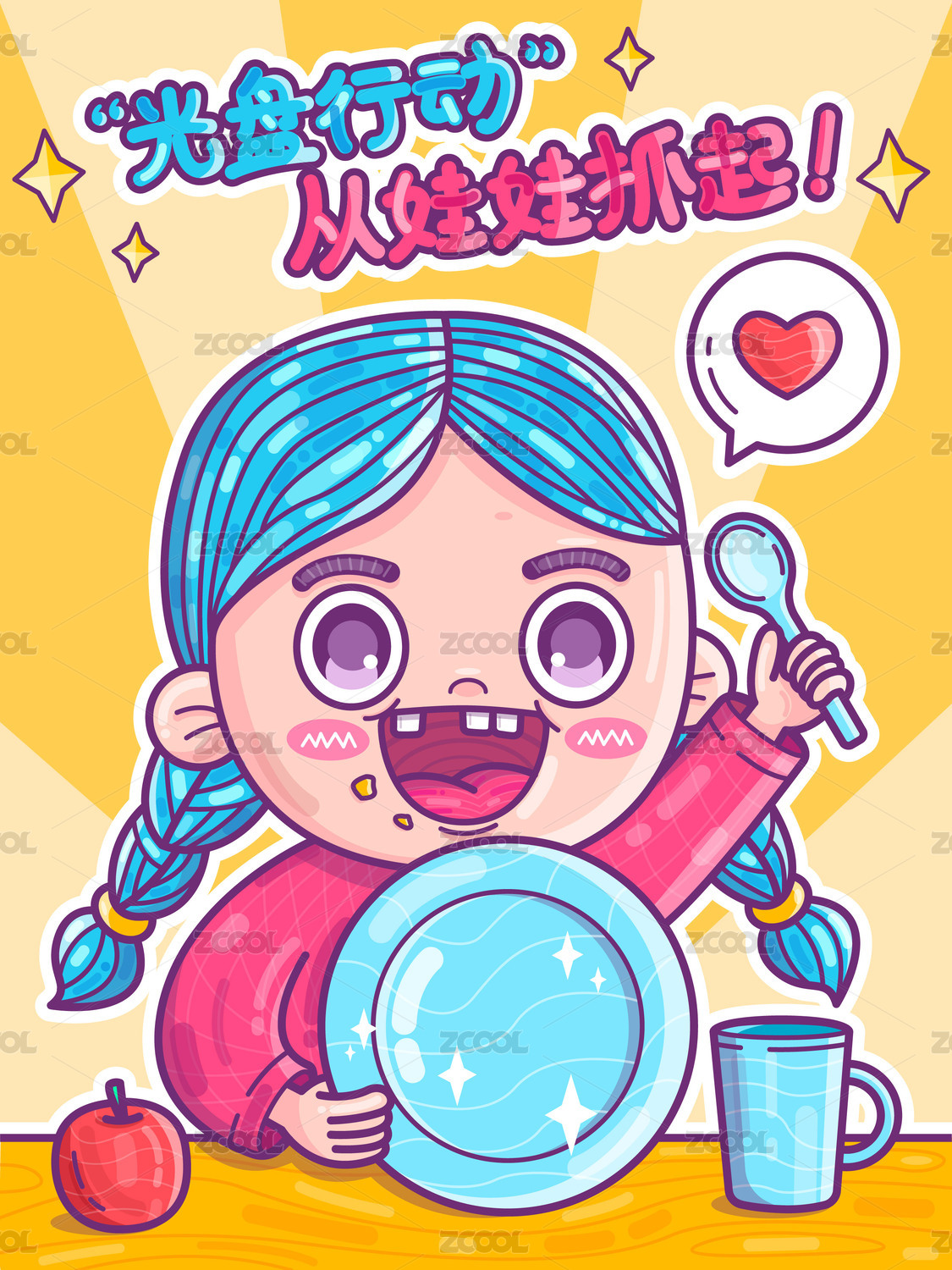 光盤(pán)行動(dòng)節(jié)約糧食公益海報(bào)小女孩吃飯幼兒園