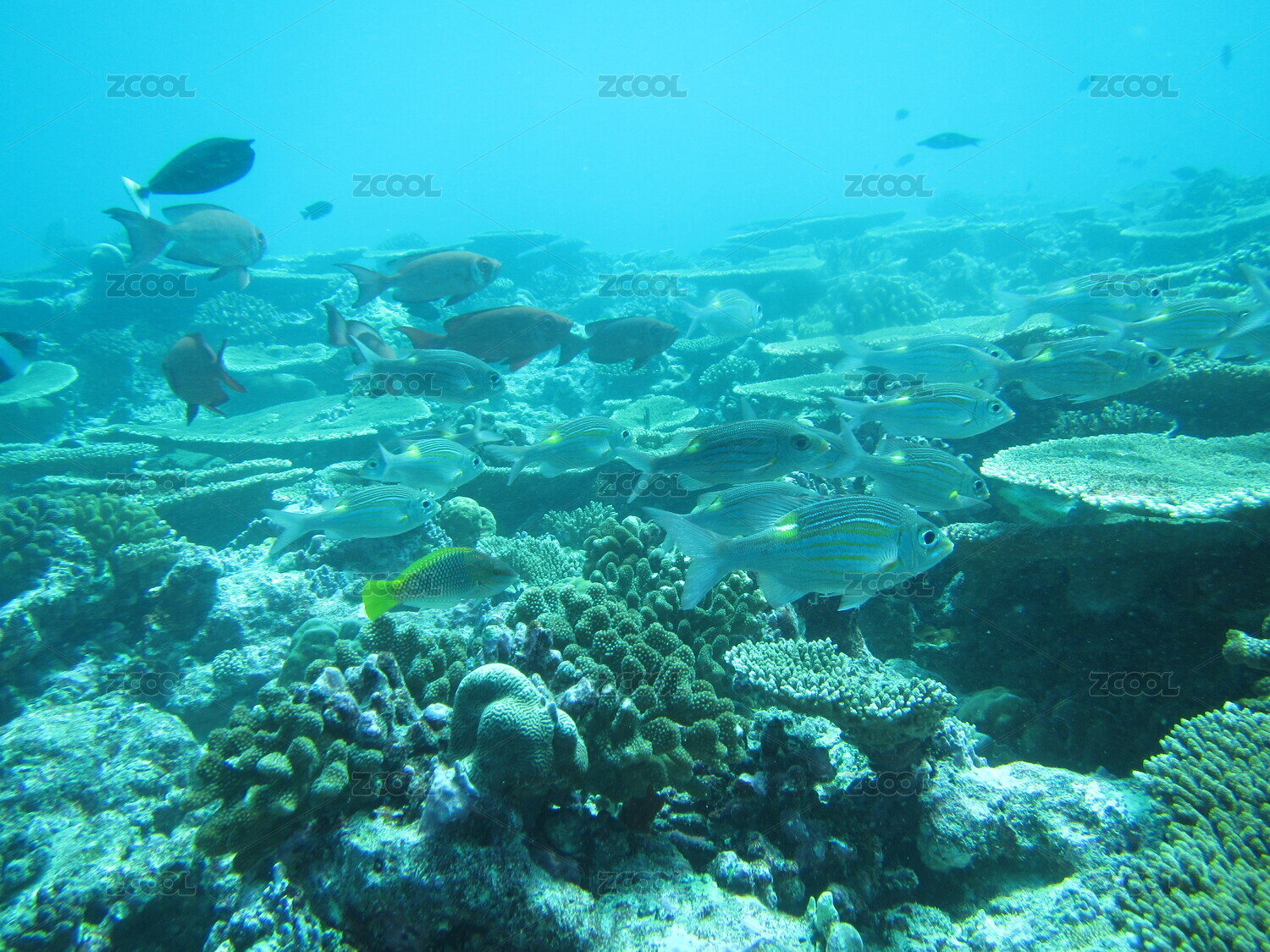在珊瑚礁中穿梭的魚群