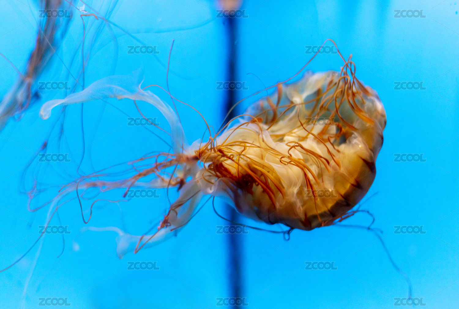 海洋中藍色背景水母特寫
