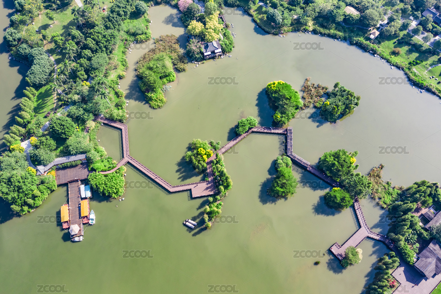 上午航拍廣州市海珠湖濕地公園風(fēng)光