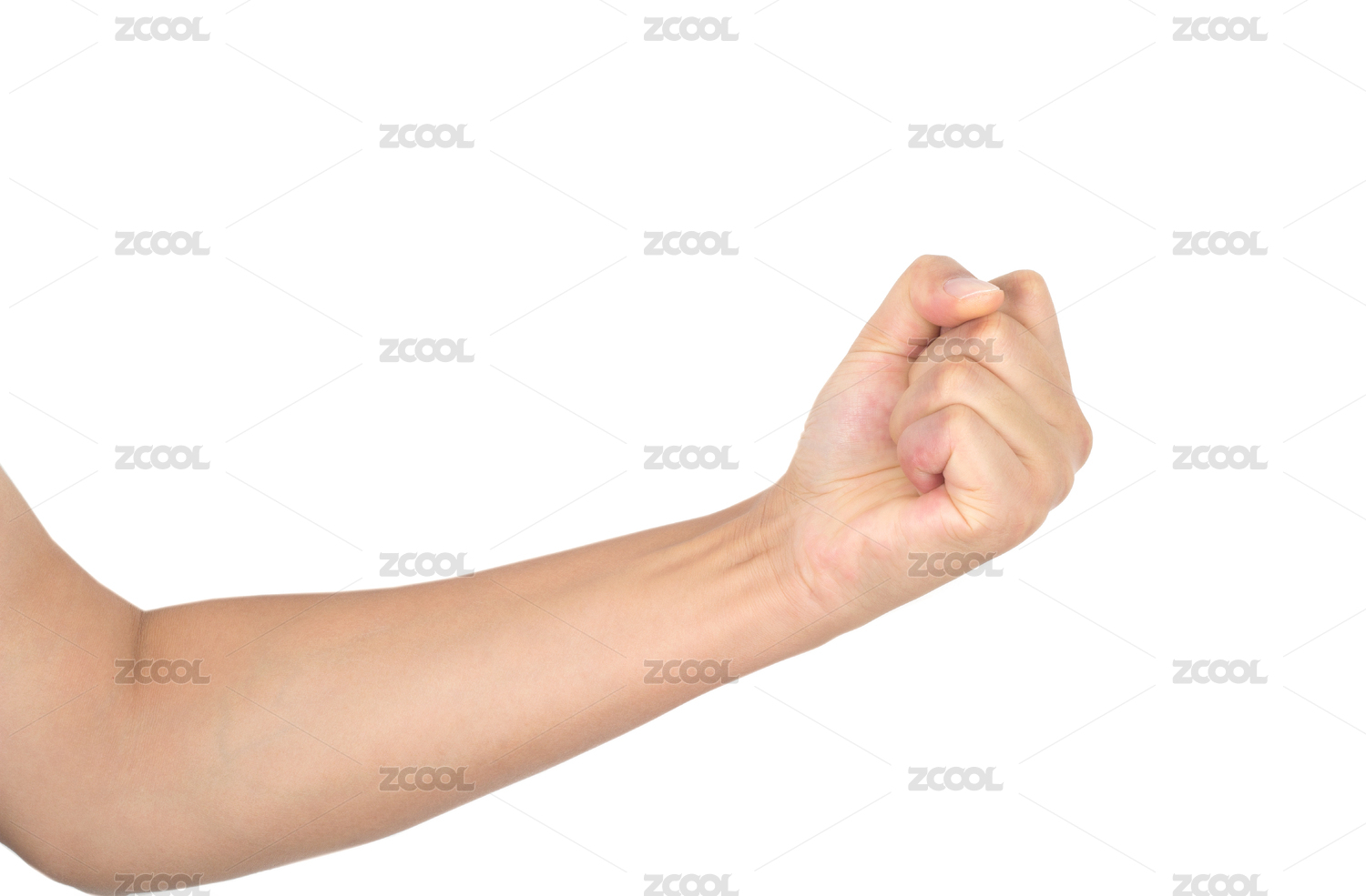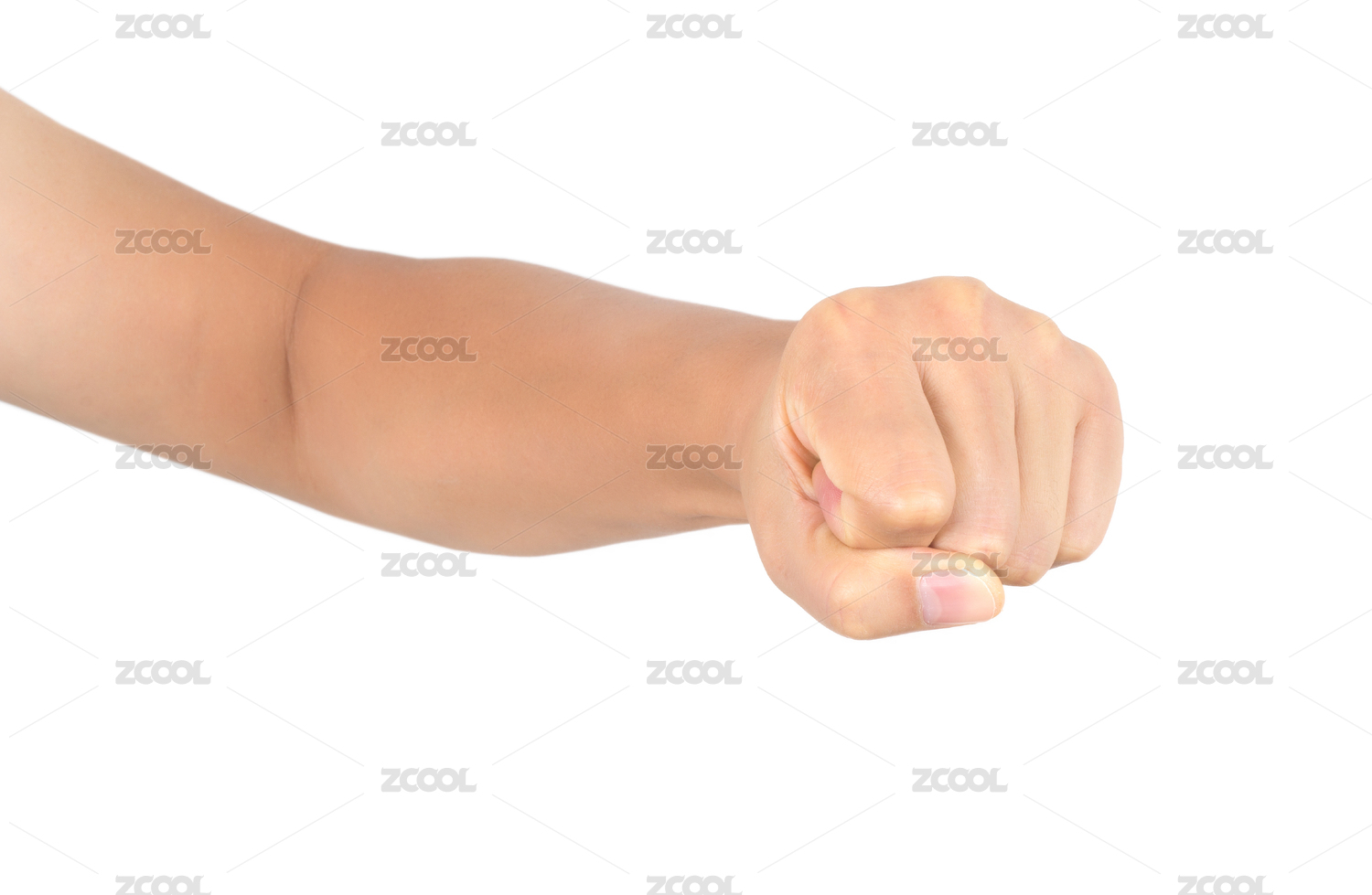 白背景前一只重拳出擊的手