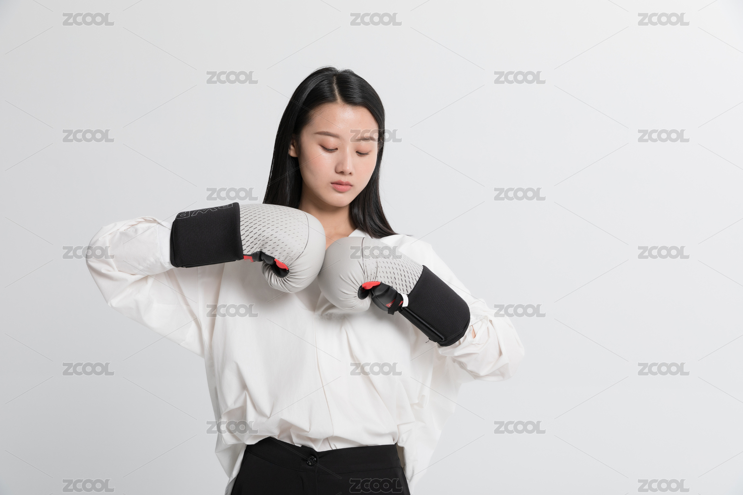 戴著手套的職場女性