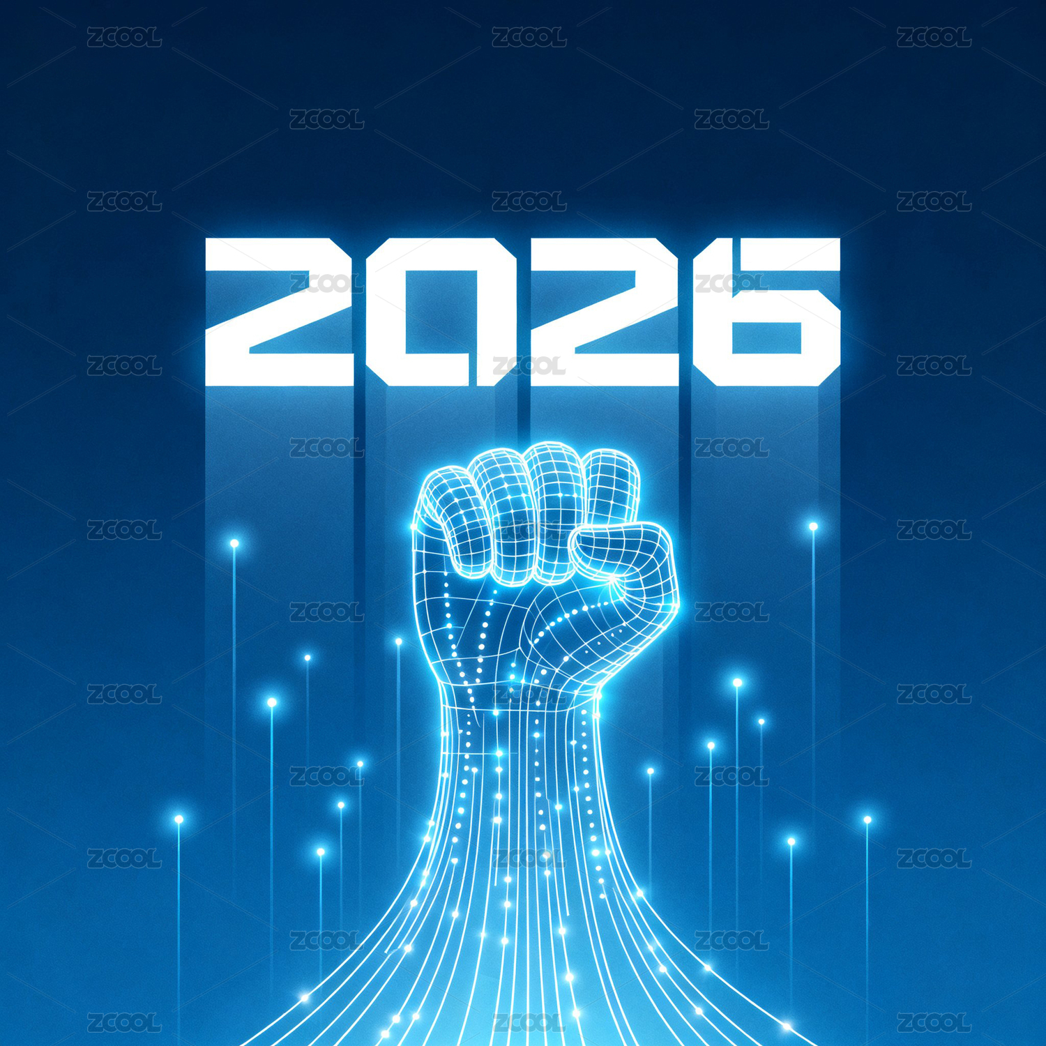 藍色背景里的線條拳頭和2026