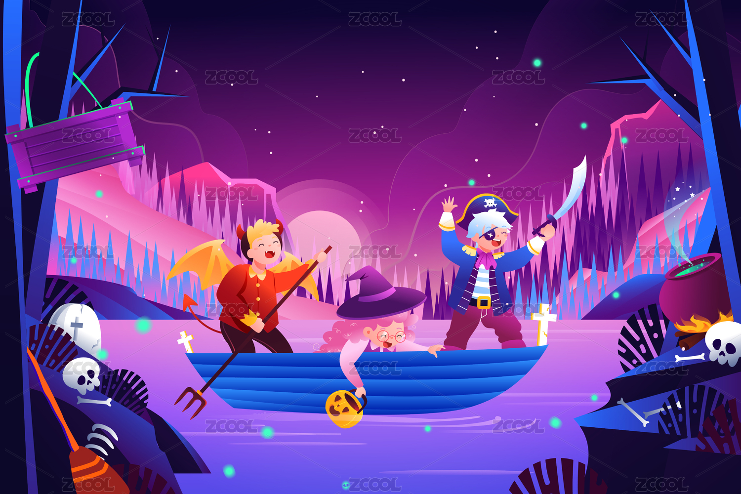 萬(wàn)圣節(jié)裝扮兒童風(fēng)景矢量插畫