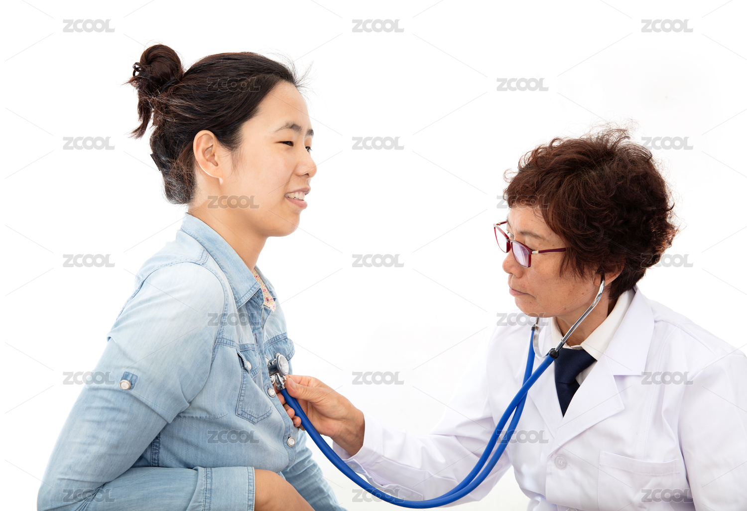 穿著白大褂的中國醫(yī)生正用聽診器為患者聽心率