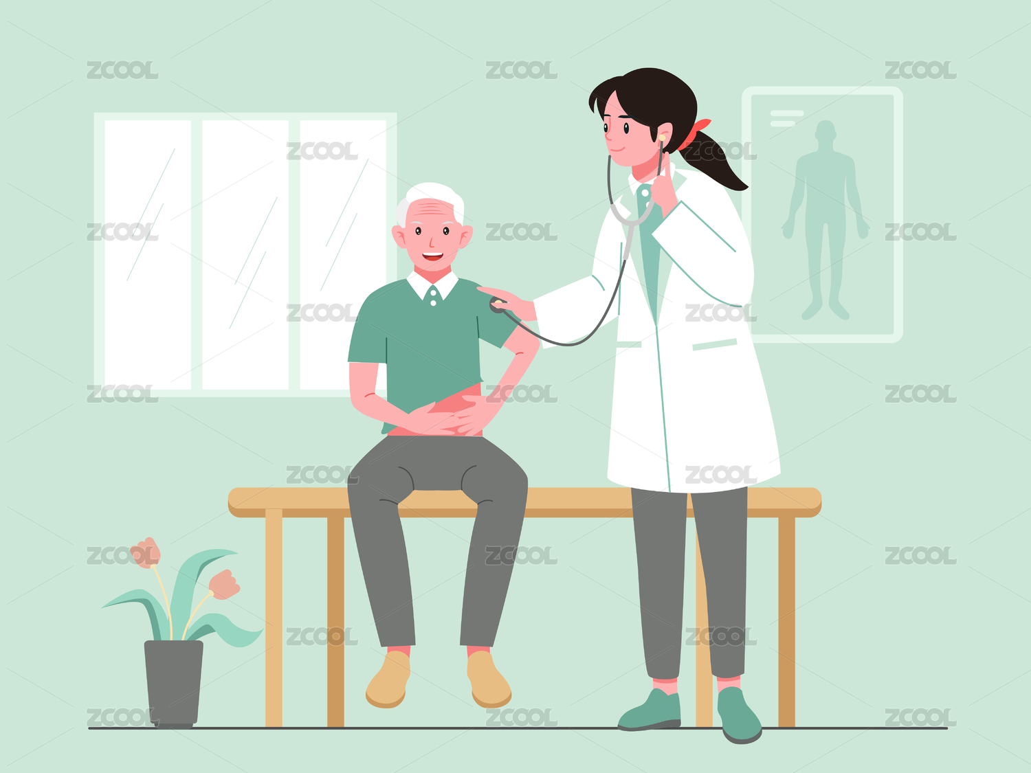 患者配戴智能硬件運(yùn)動(dòng)監(jiān)測實(shí)時(shí)心率醫(yī)療插畫