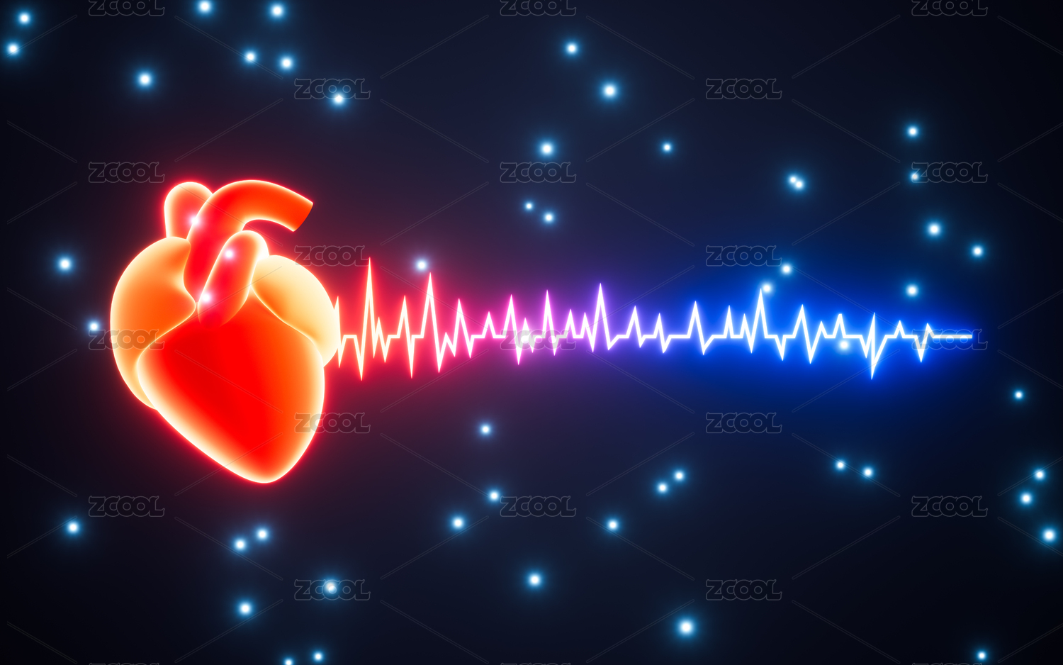 心率符號與霓虹燈光效果3D渲染