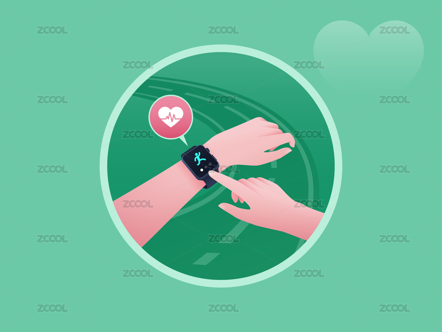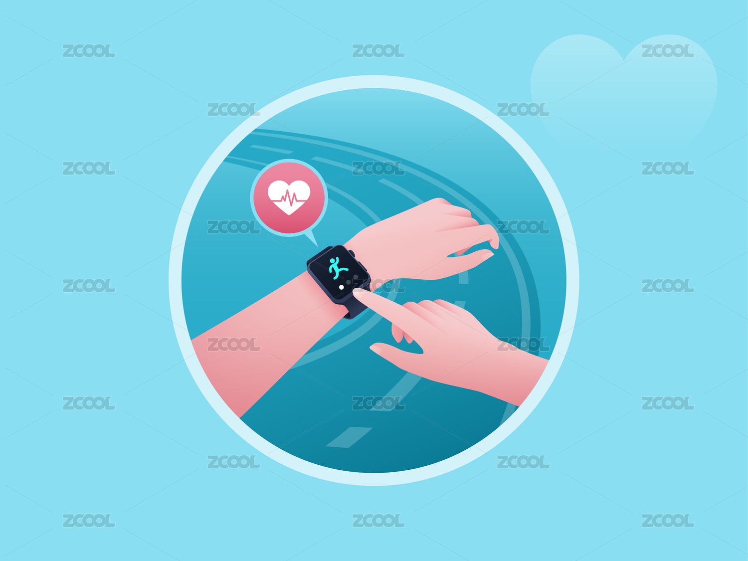 佩戴運(yùn)動(dòng)手表跑步提升心率健康矢量插畫