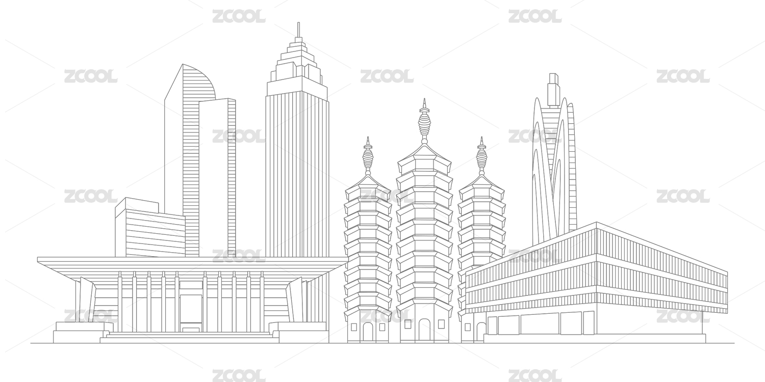 嘉興城市手繪建筑剪影