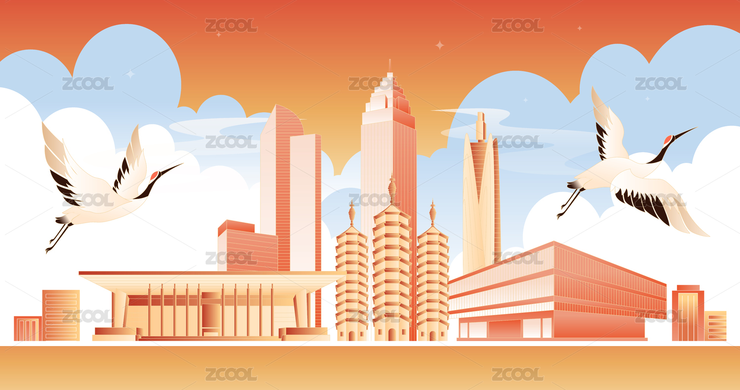 嘉興城市天際線卡通插畫