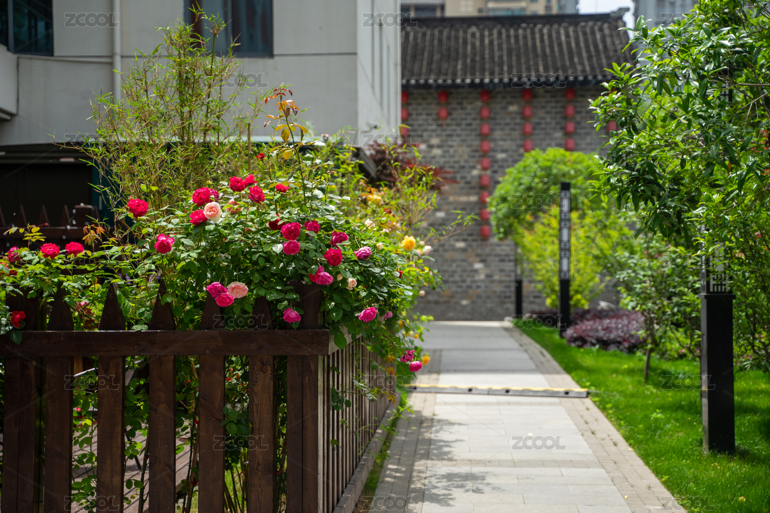 中國(guó)南京盛開(kāi)著鮮花的熙南里街區(qū)