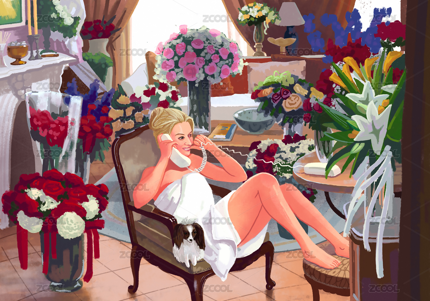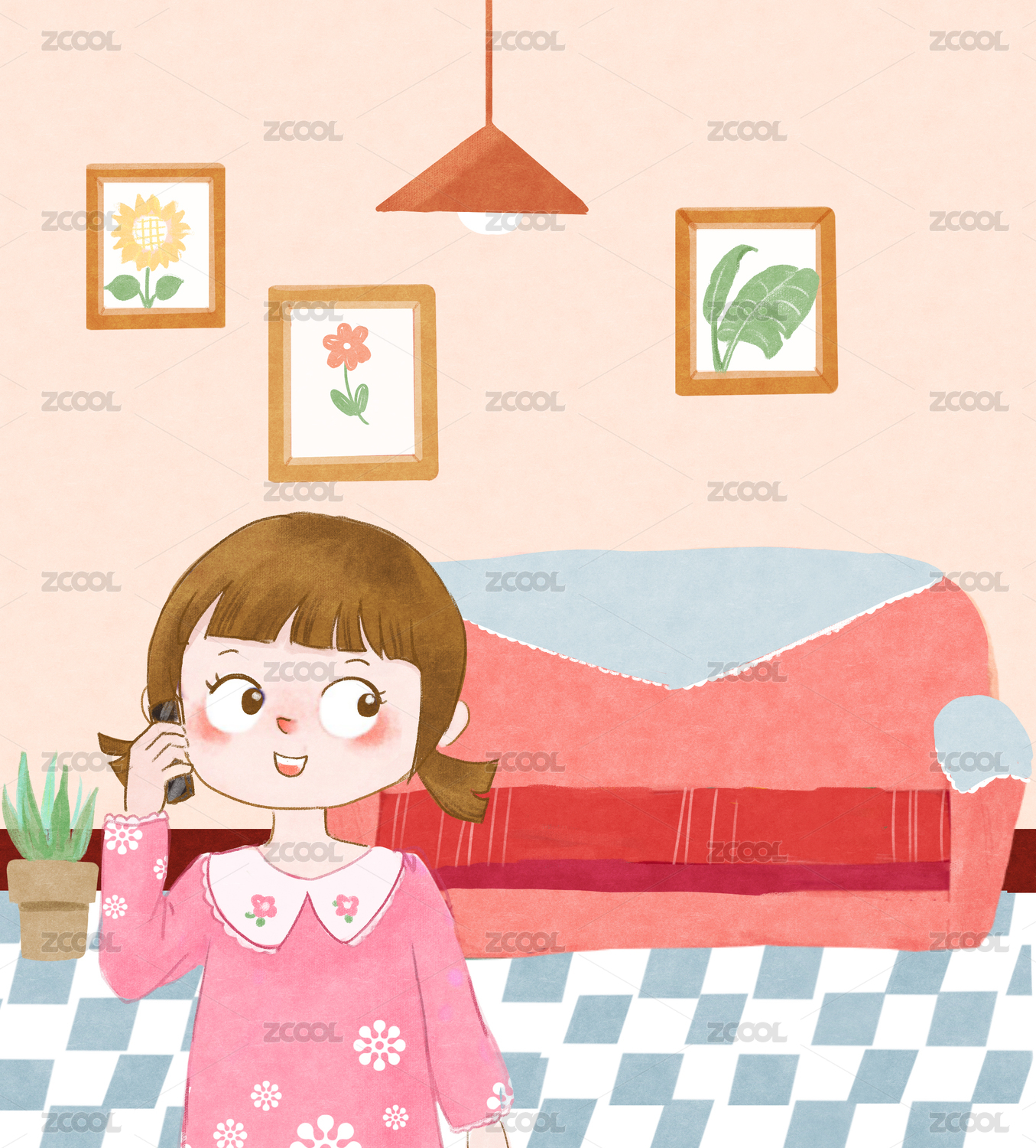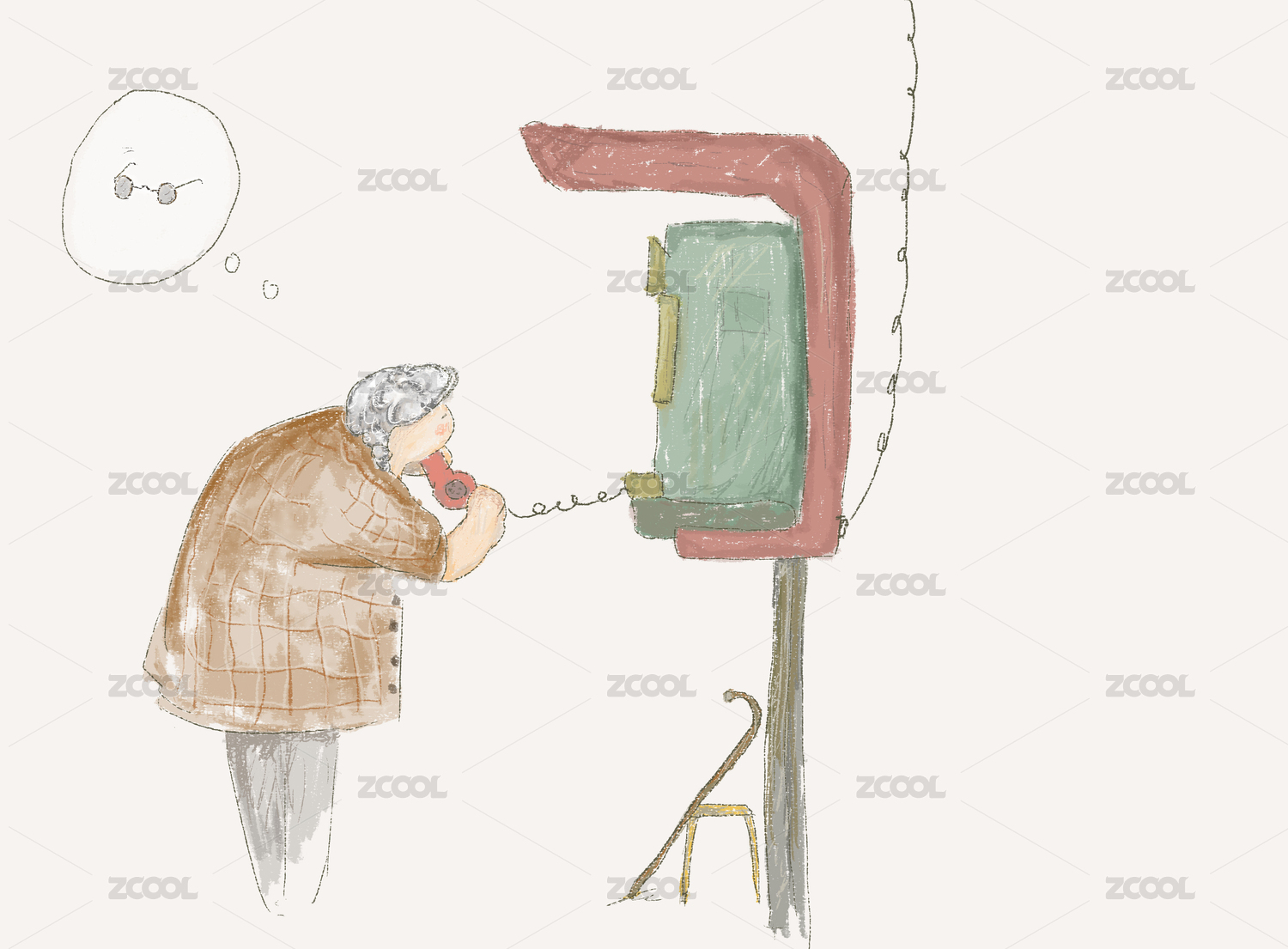 手繪卡通正在打電話的爺爺奶奶兩個人