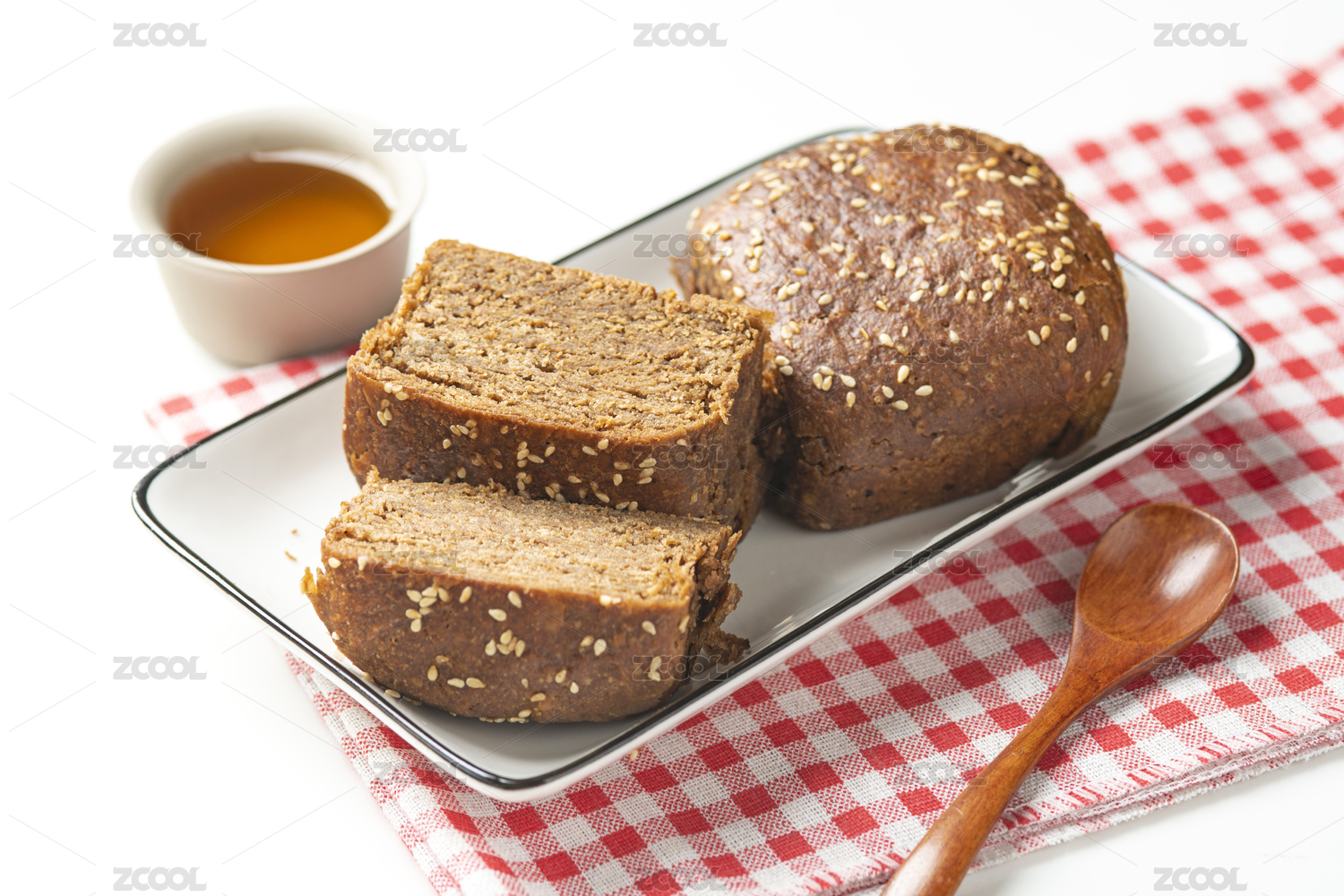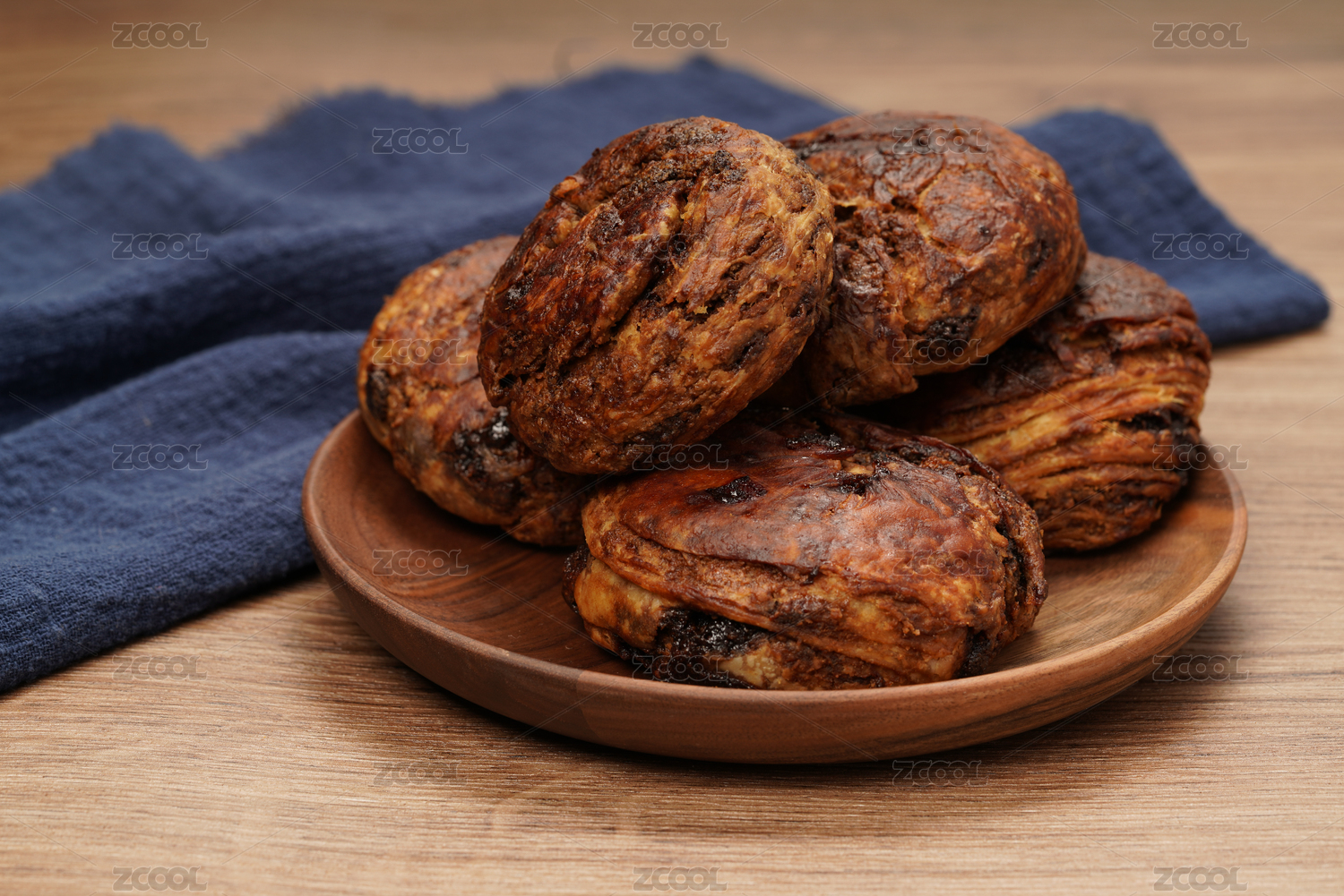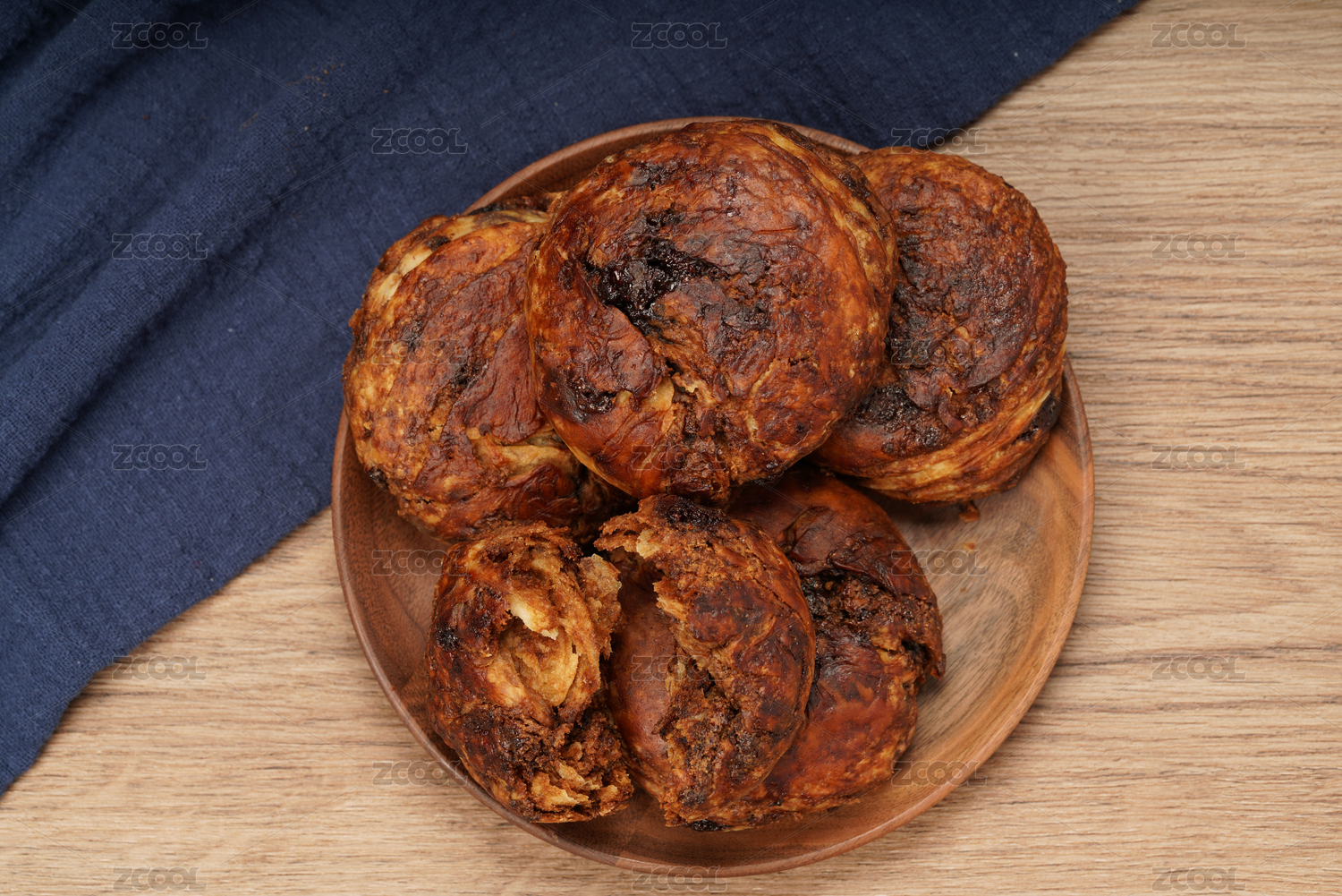 實(shí)木桌面上擺著一盤烤熟的紅糖麻醬燒餅
