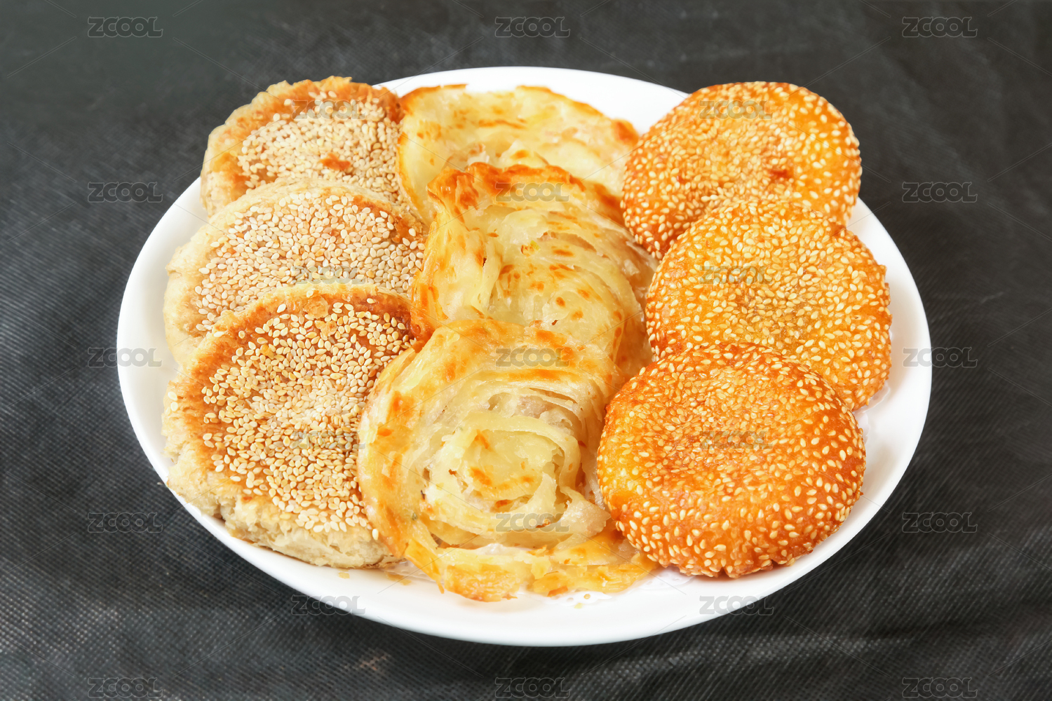 一盤天津美食麻醬燒餅特寫
