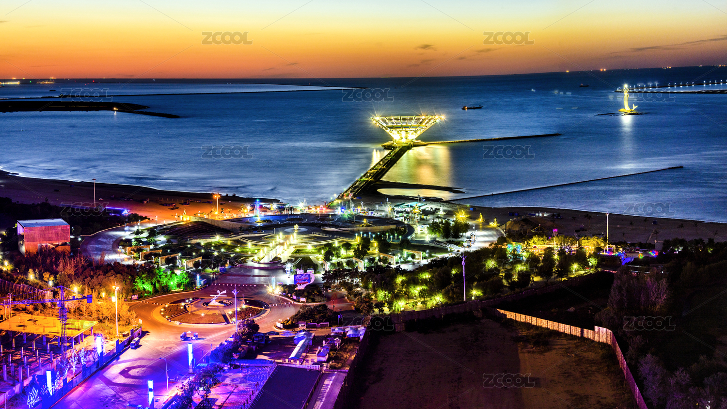 中國遼寧省營口市鲅魚圈山海廣場夜景