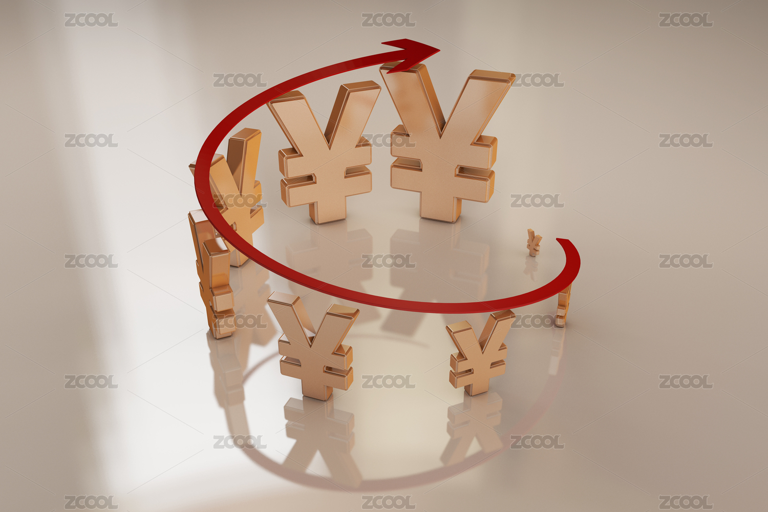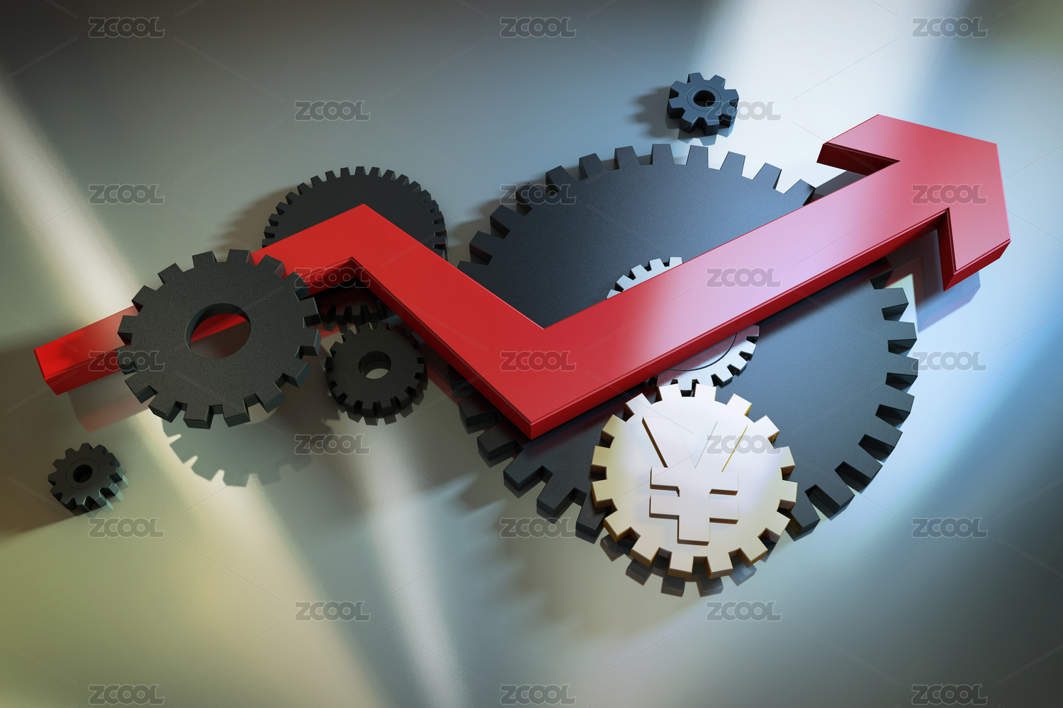 事業(yè)發(fā)展箭頭與人民幣符號齒輪