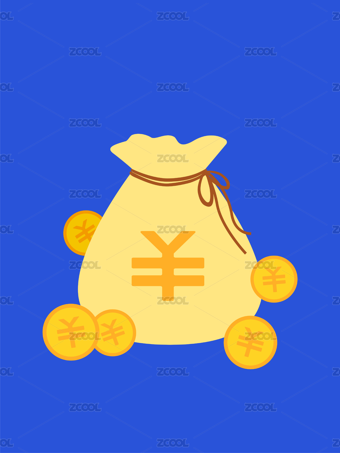 藍色背景孤立的人民幣金幣錢袋子矢量圖標(biāo)