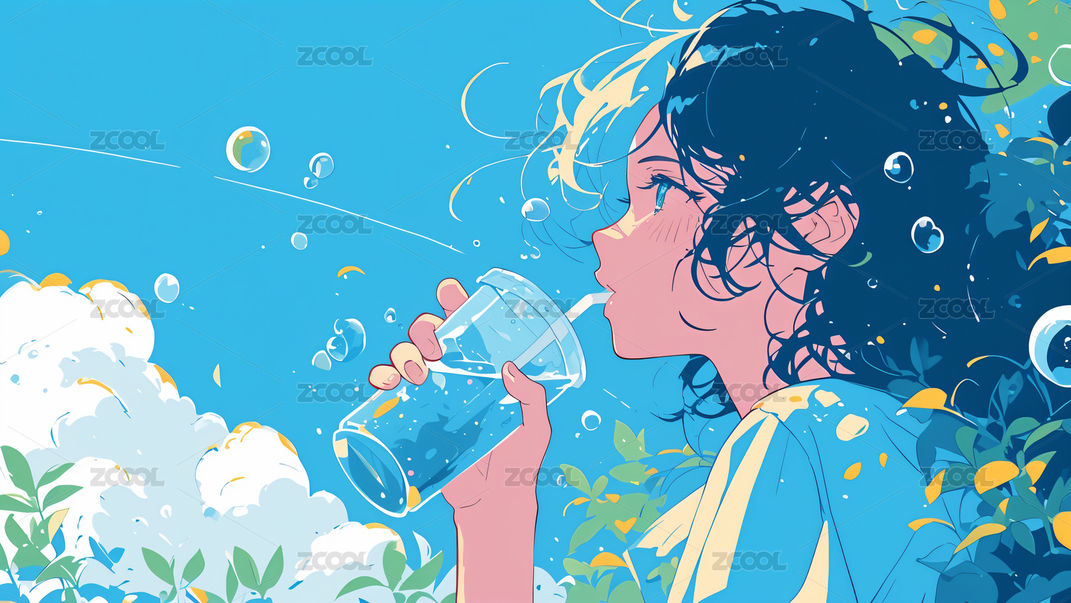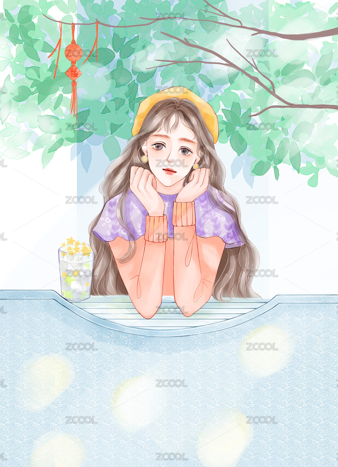清新夏日坐在院子里手拿書籍閱讀的可愛少女