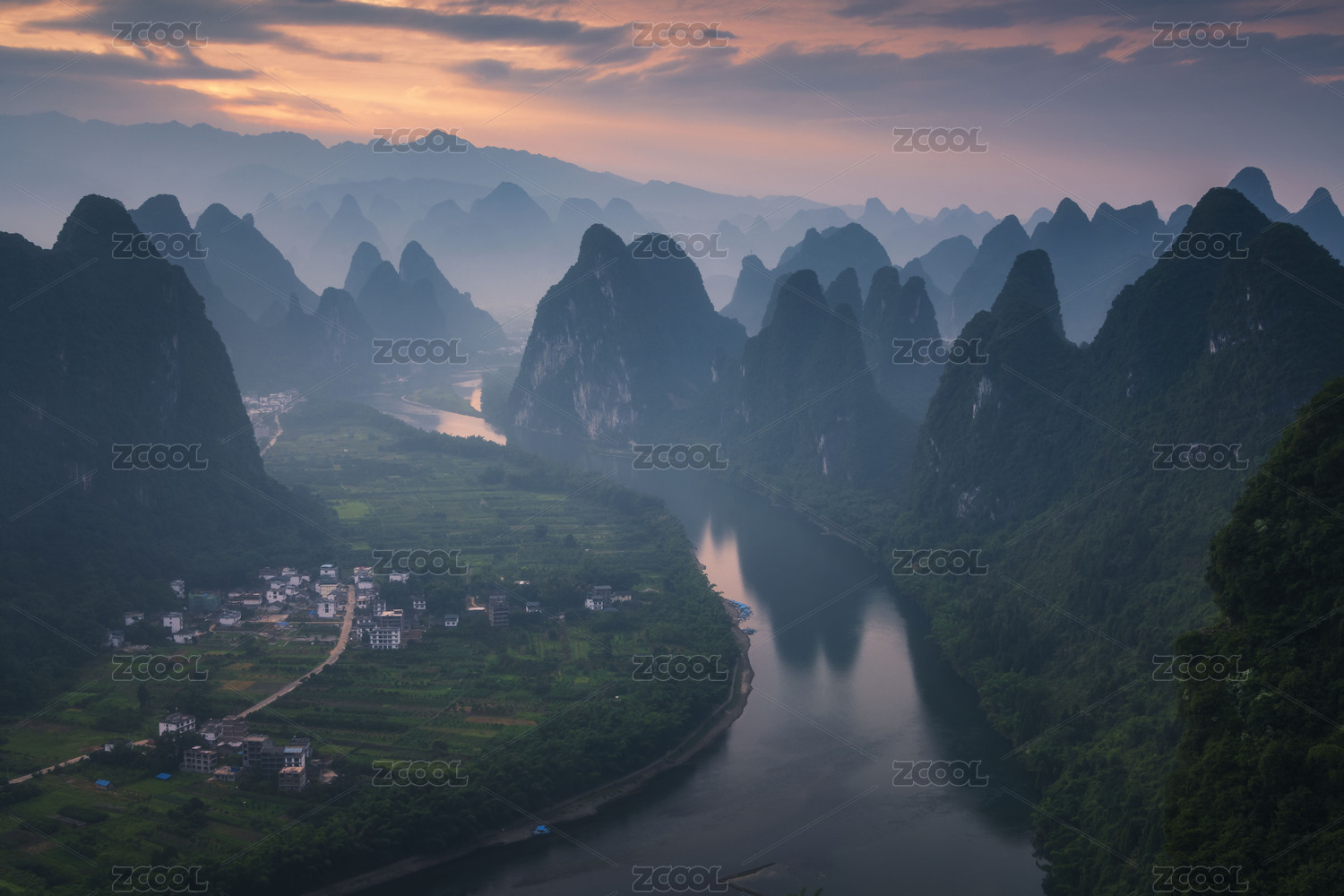 中國(guó)廣西桂林陽(yáng)朔興坪古鎮(zhèn)風(fēng)光