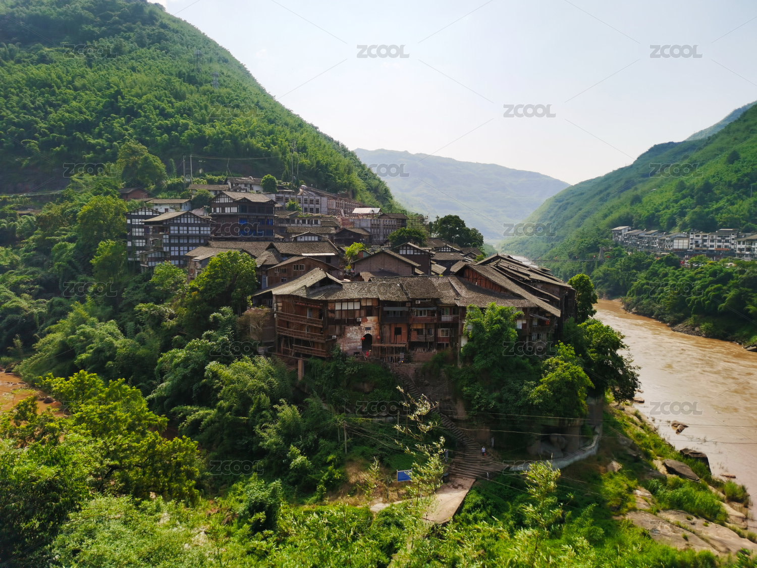 中國(guó)浙江杭州富陽(yáng)孫權(quán)故里龍門(mén)古鎮(zhèn)風(fēng)光