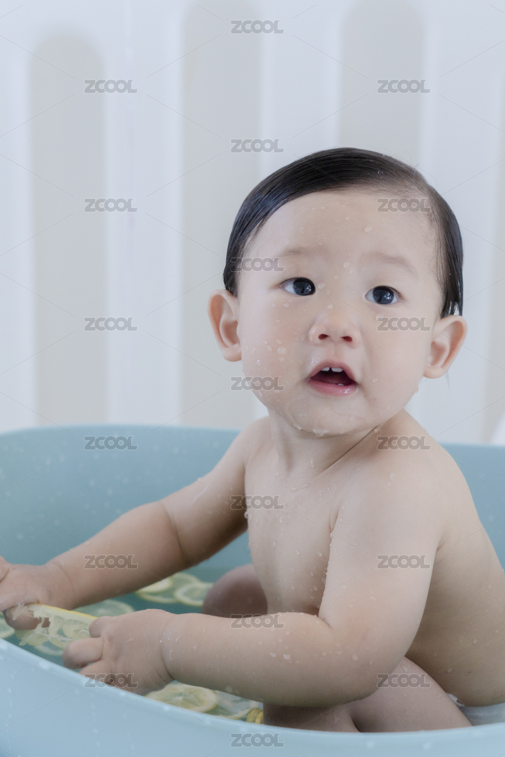 浴缸里的洗檸檬澡小男孩