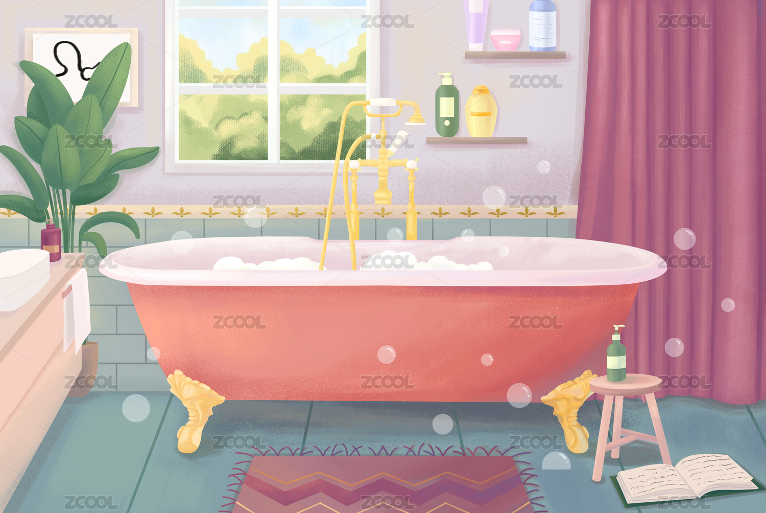 3D卡通浴缸-家居免摳素材
