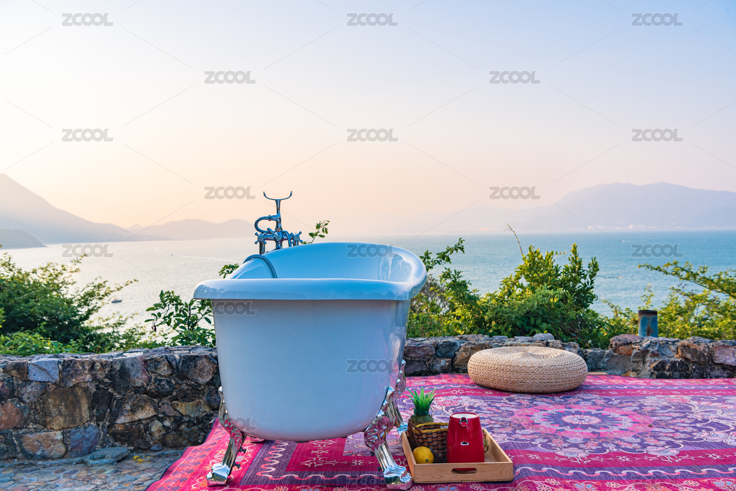 中國深圳大鵬鹿嘴山莊一處觀景臺上的浴缸