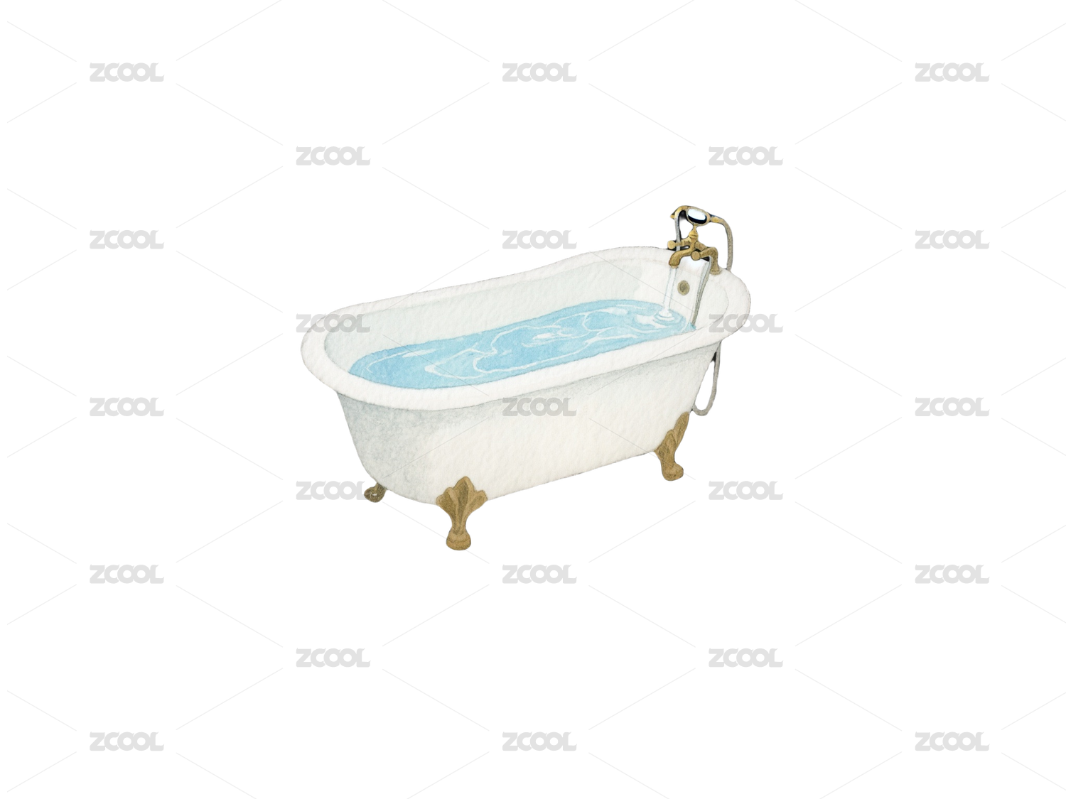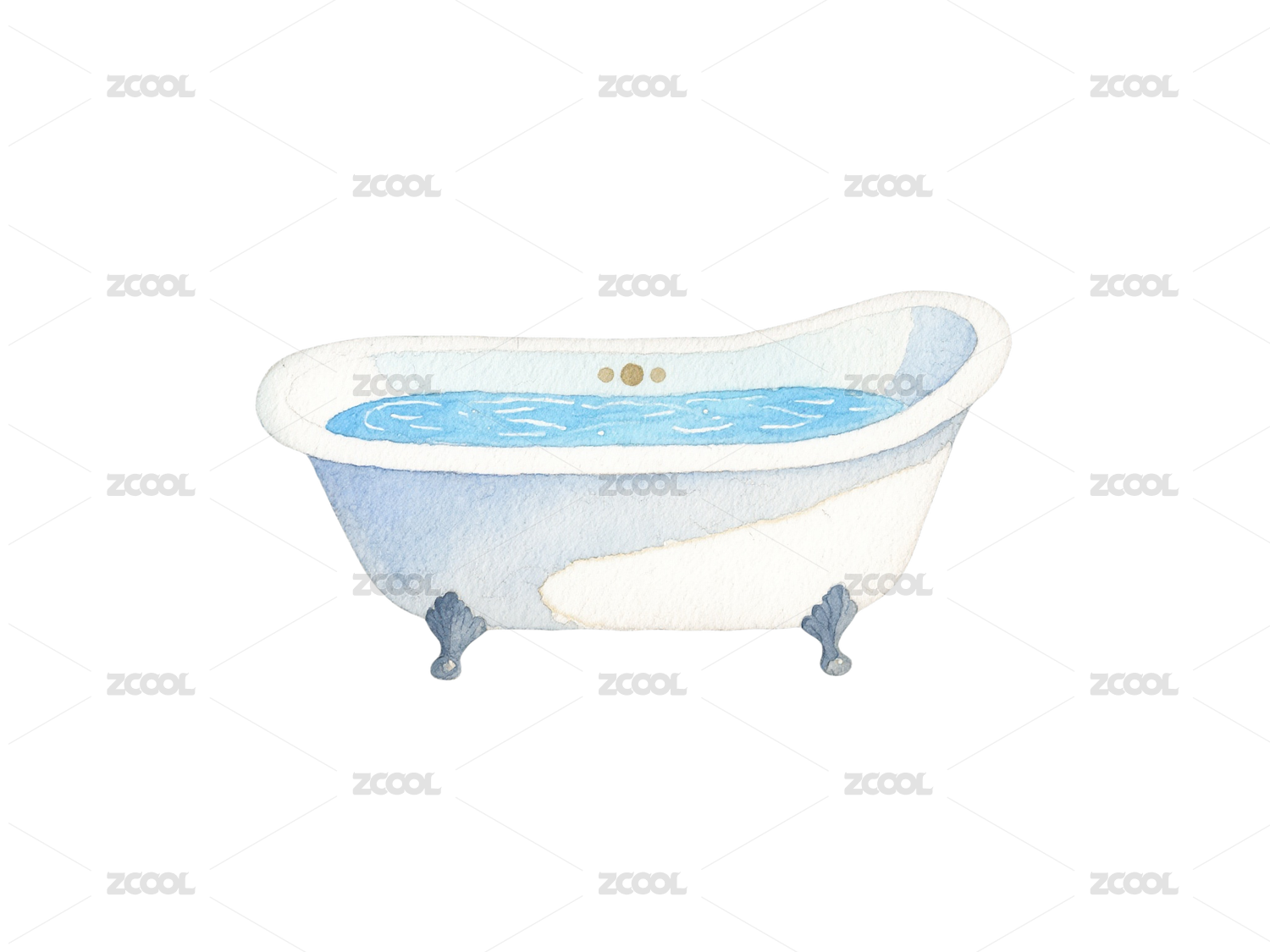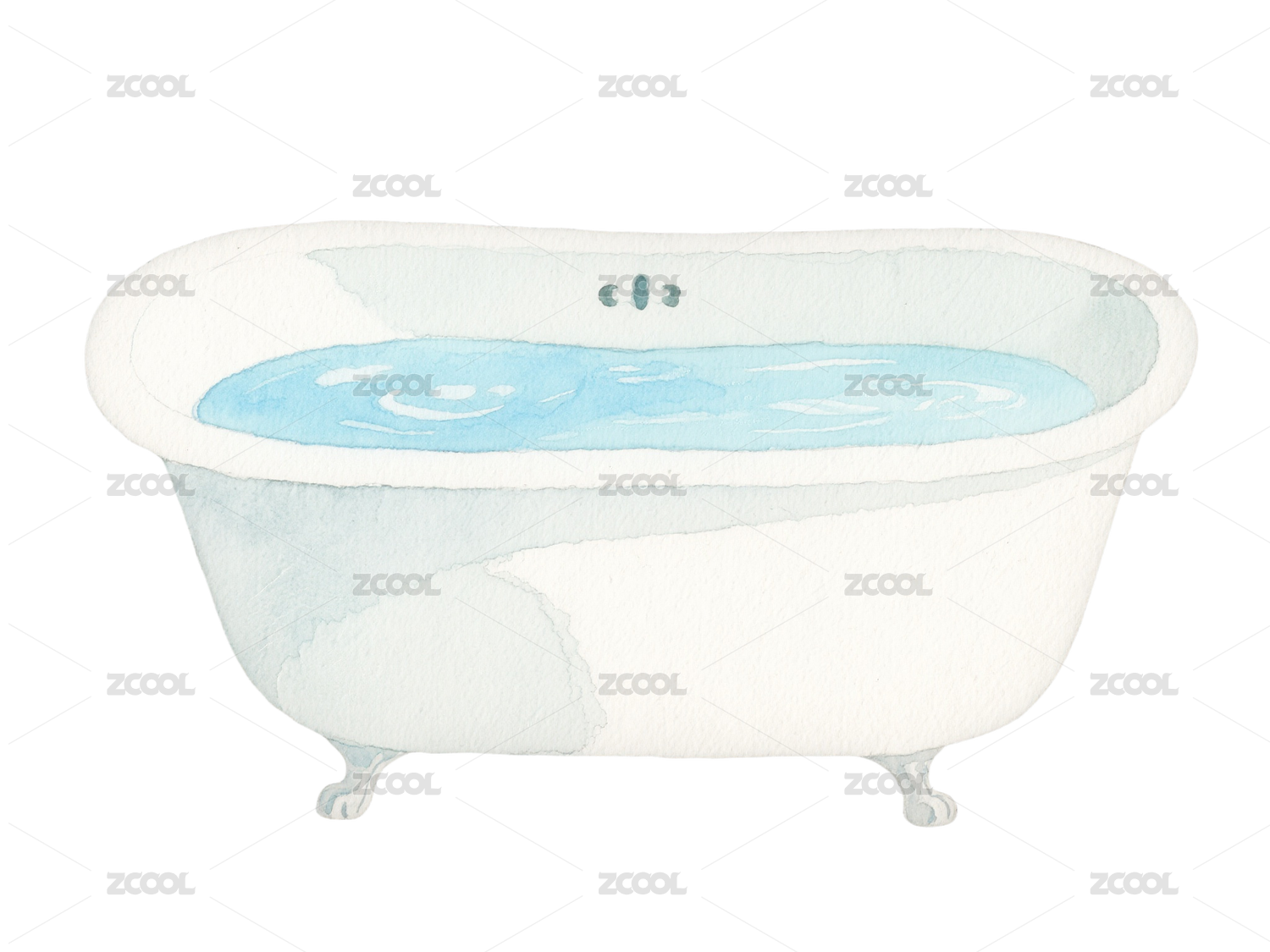 現(xiàn)代水彩浴缸-家居免摳素材