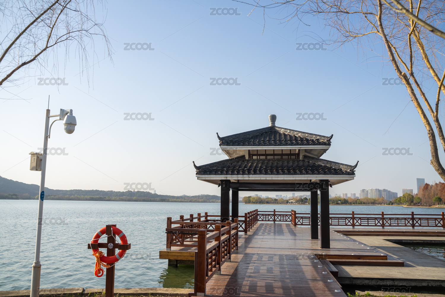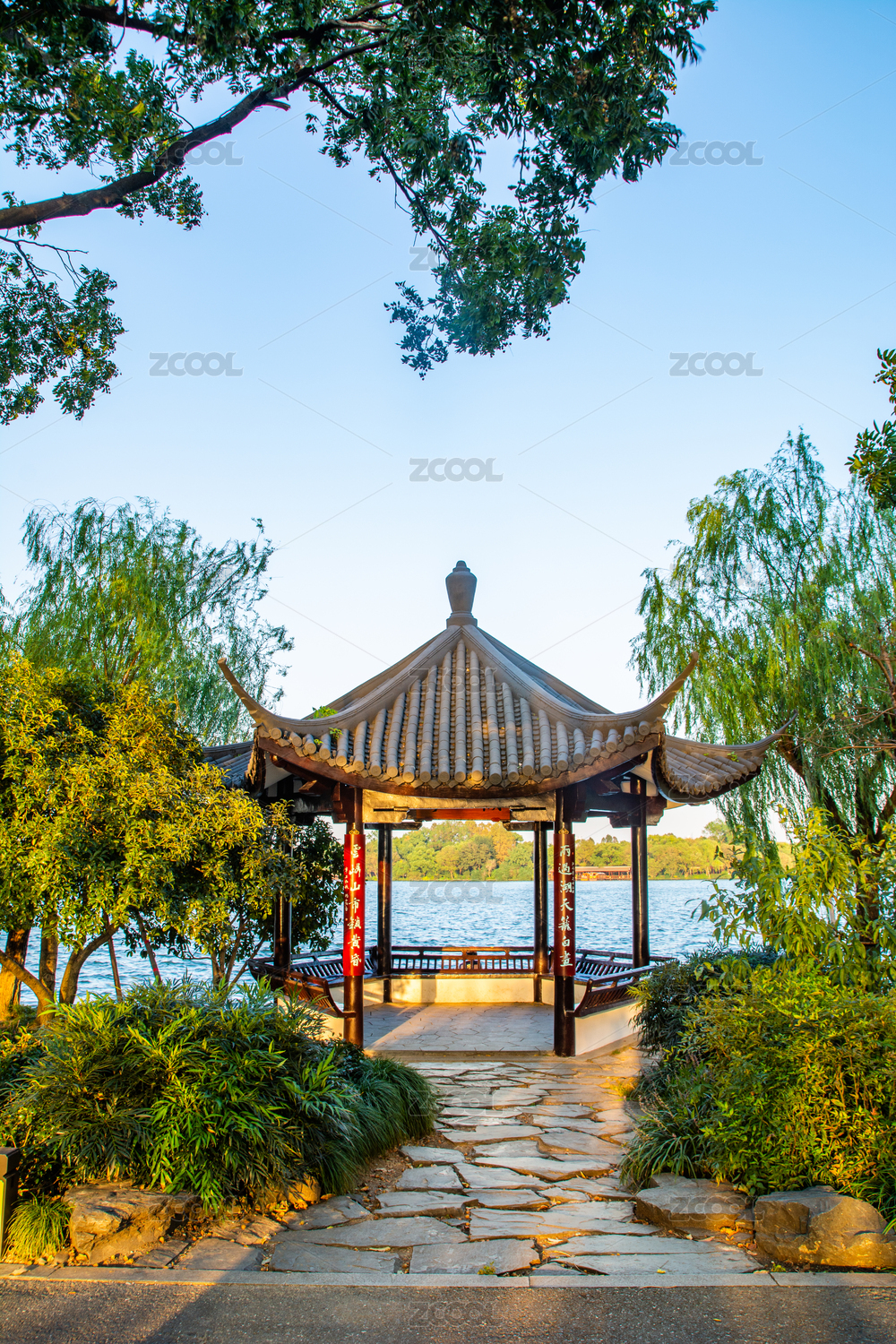中國(guó)浙江杭州西湖風(fēng)景西湖園林古亭