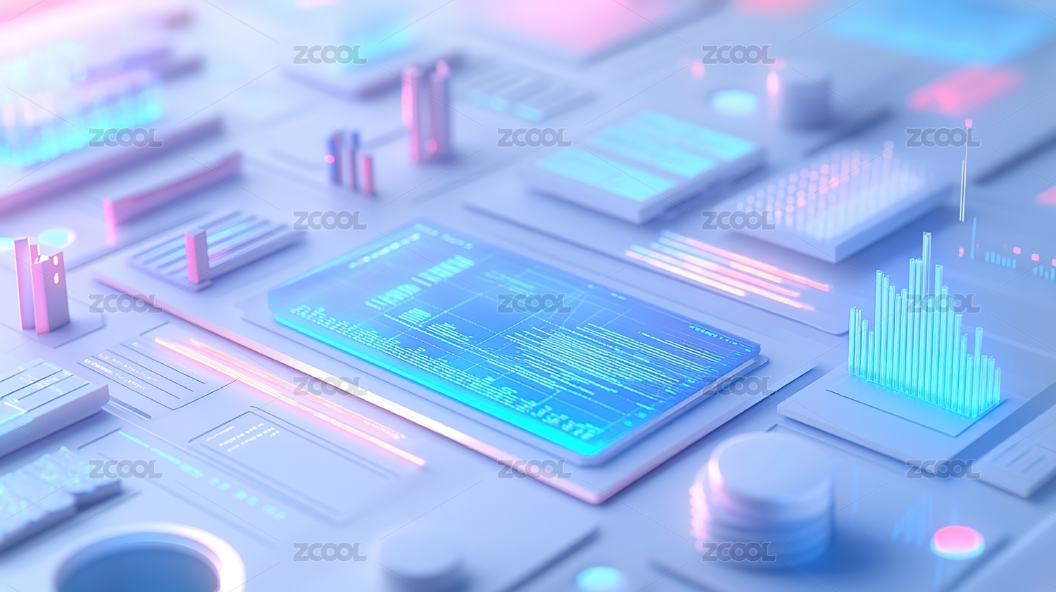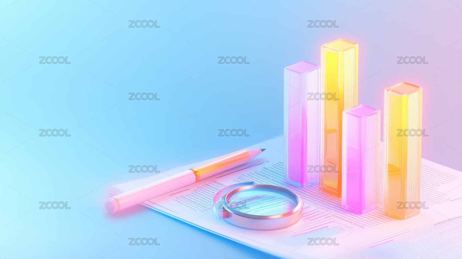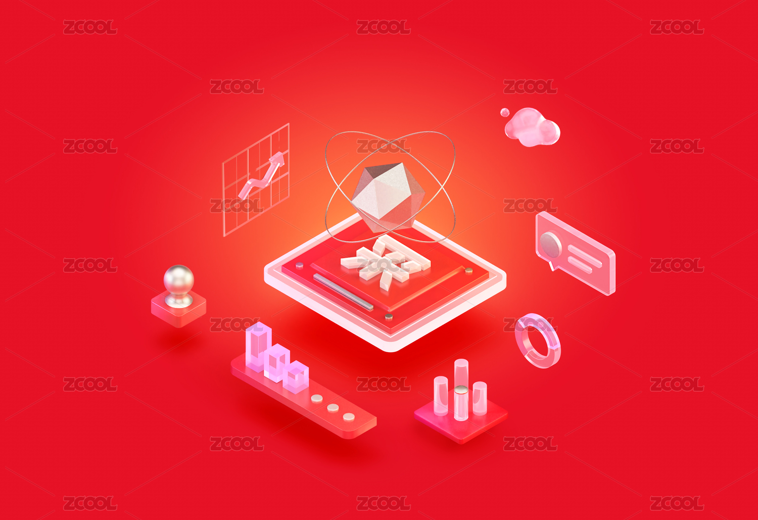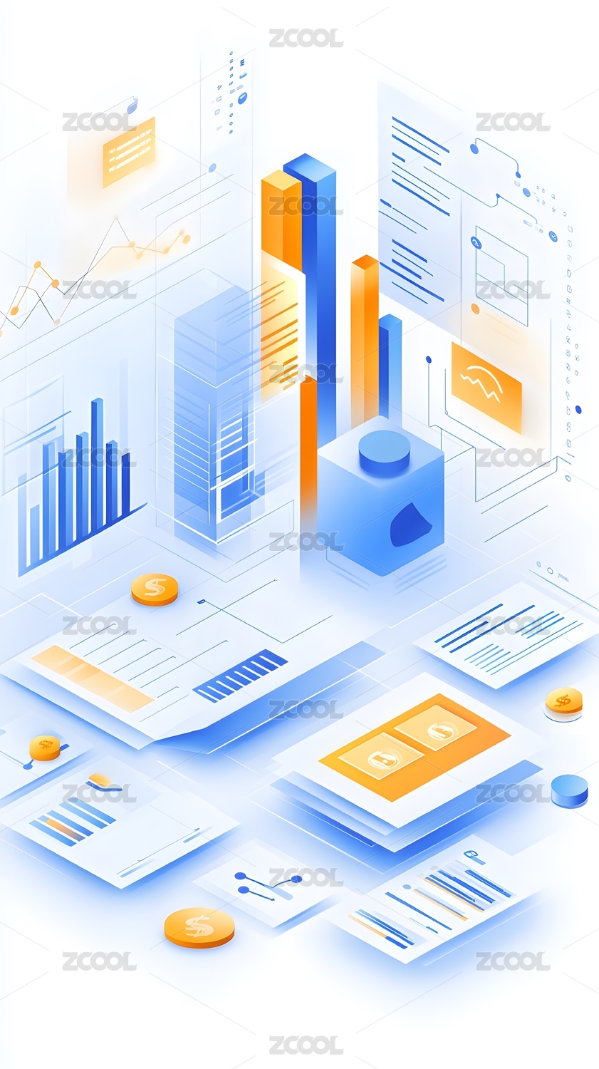 柱狀圖數(shù)據協(xié)同辦公數(shù)字化立體科技插畫紅色