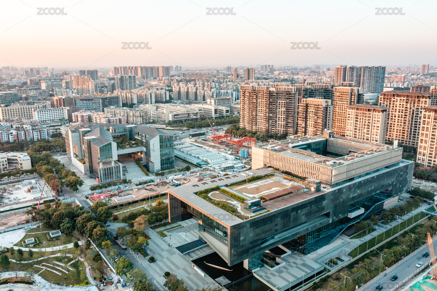 深秋溫暖斜陽中的新洲城市規(guī)劃館建筑特寫