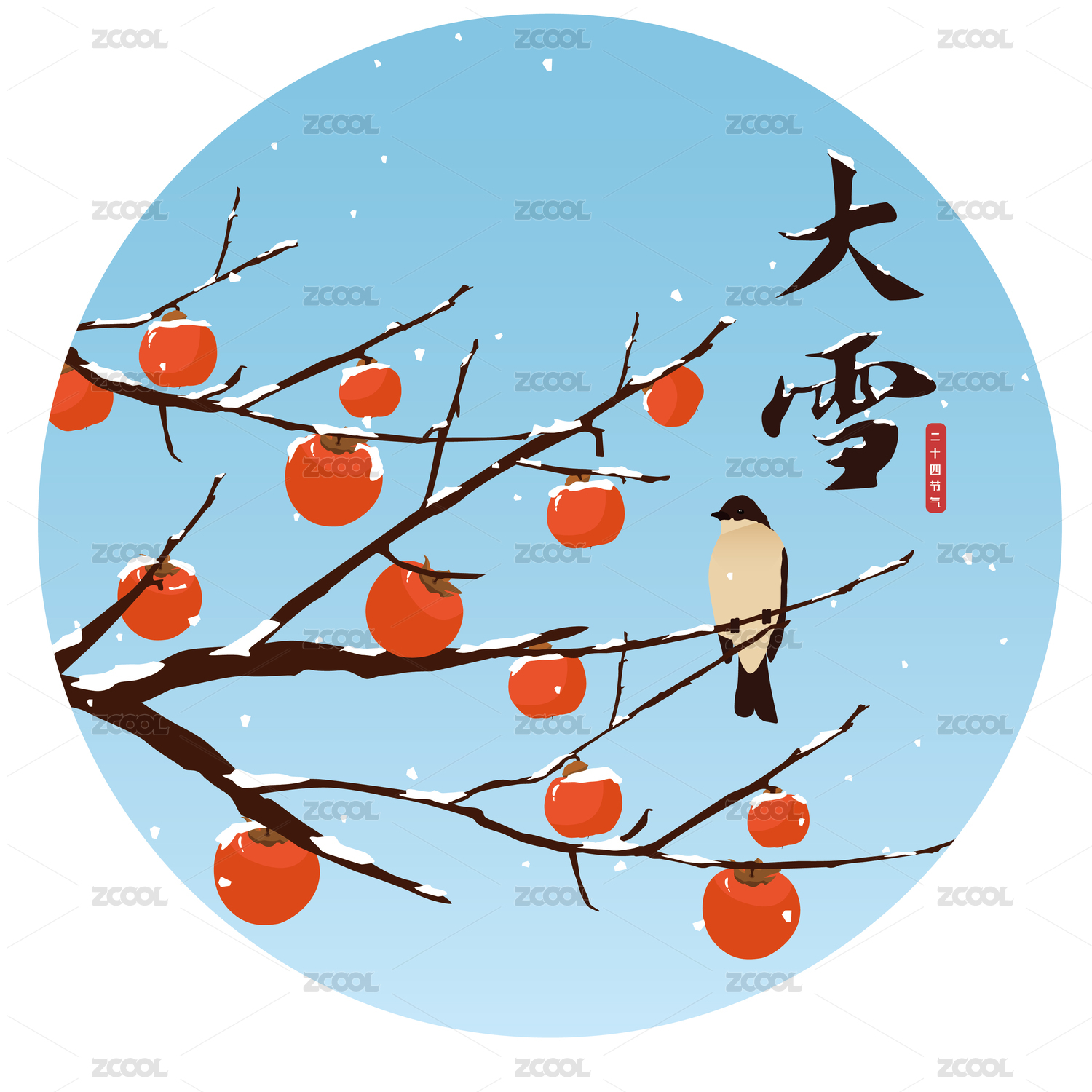 二十四節(jié)氣插畫手繪設(shè)計大雪
