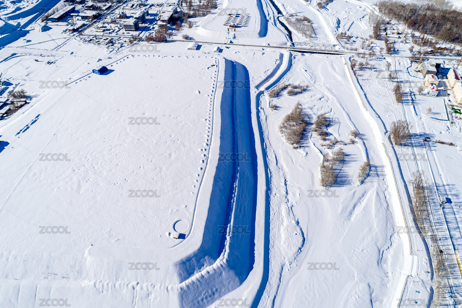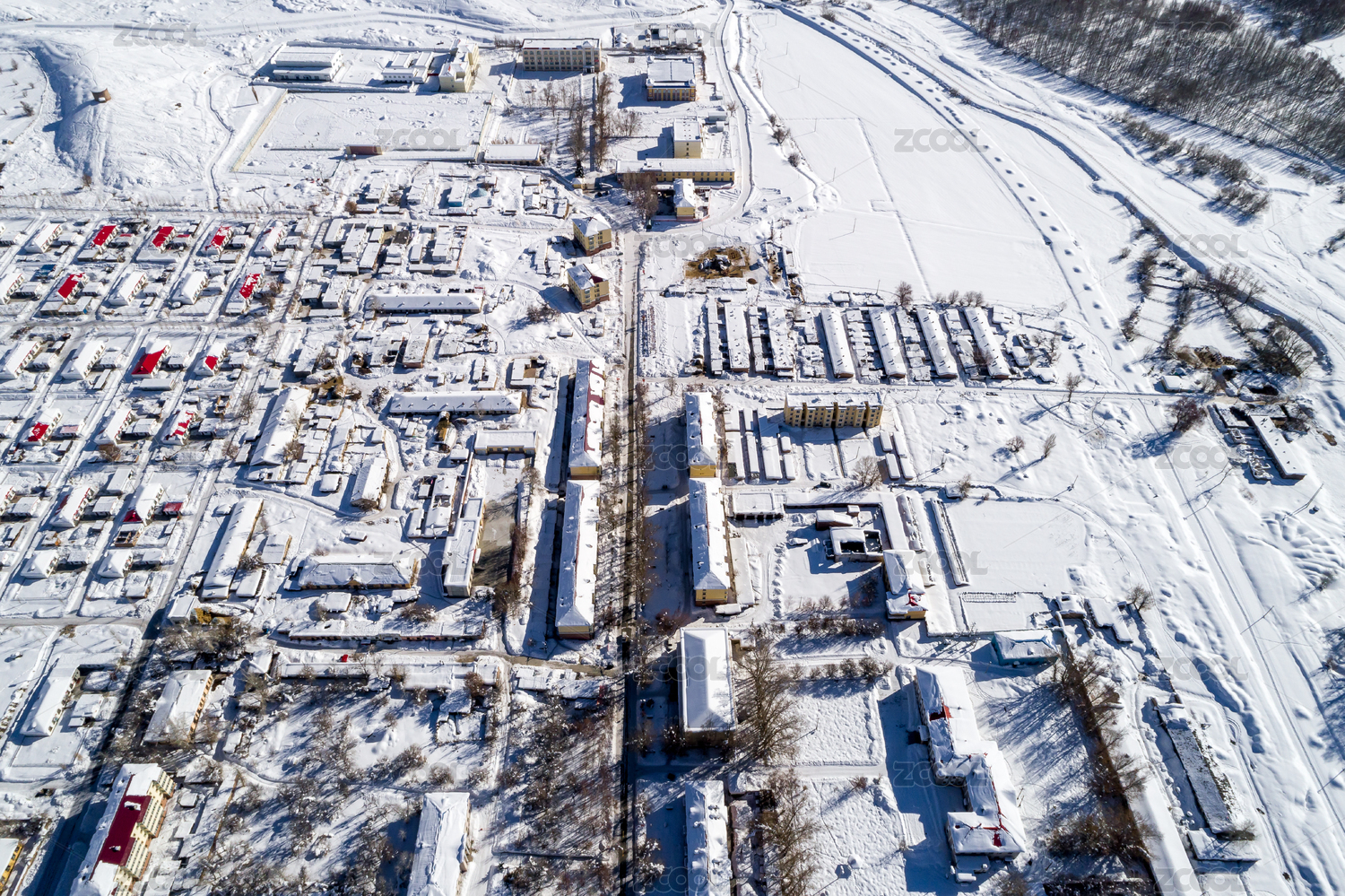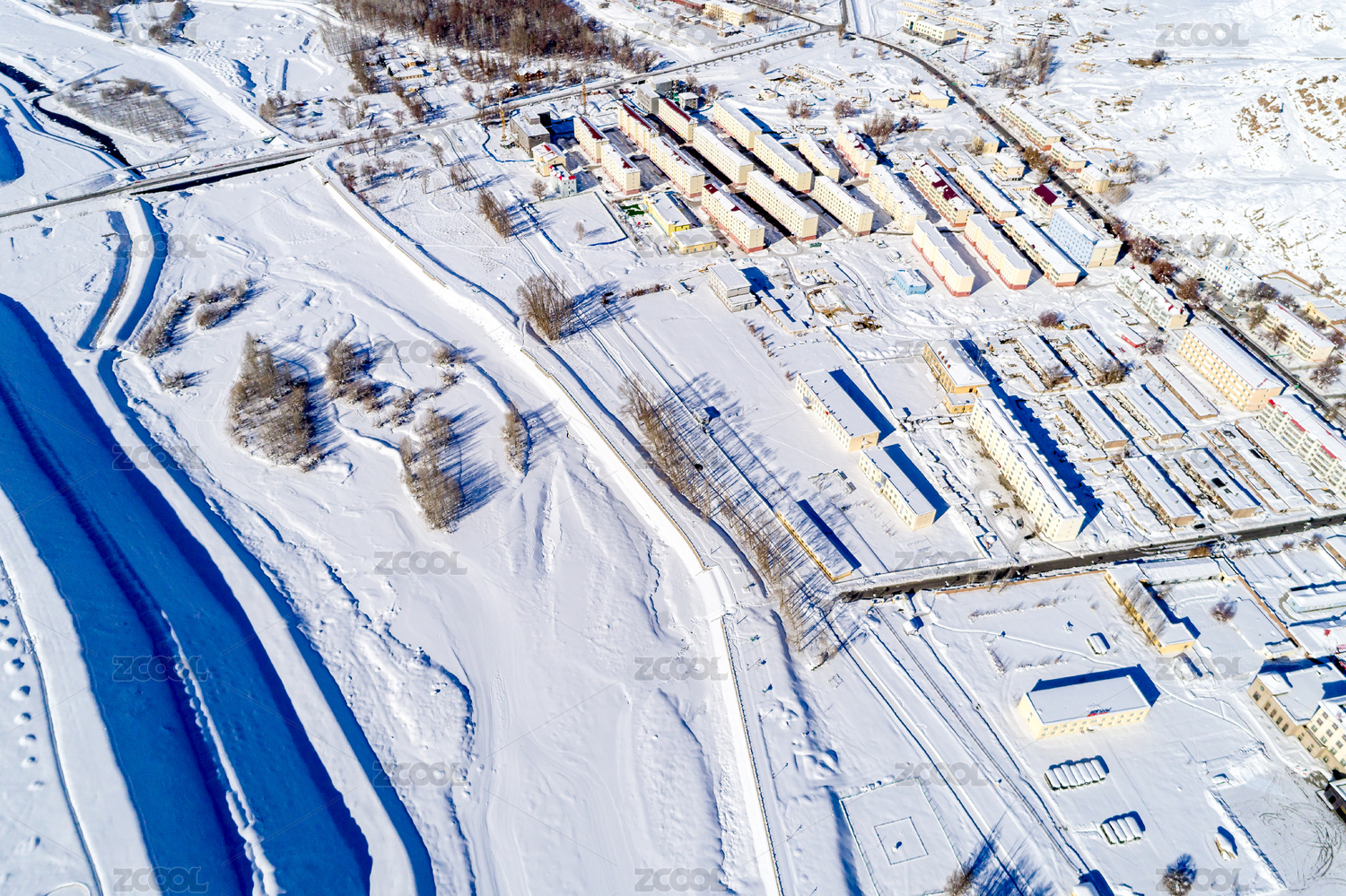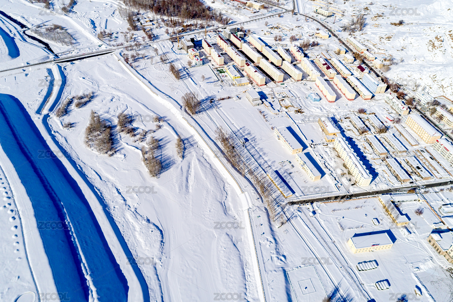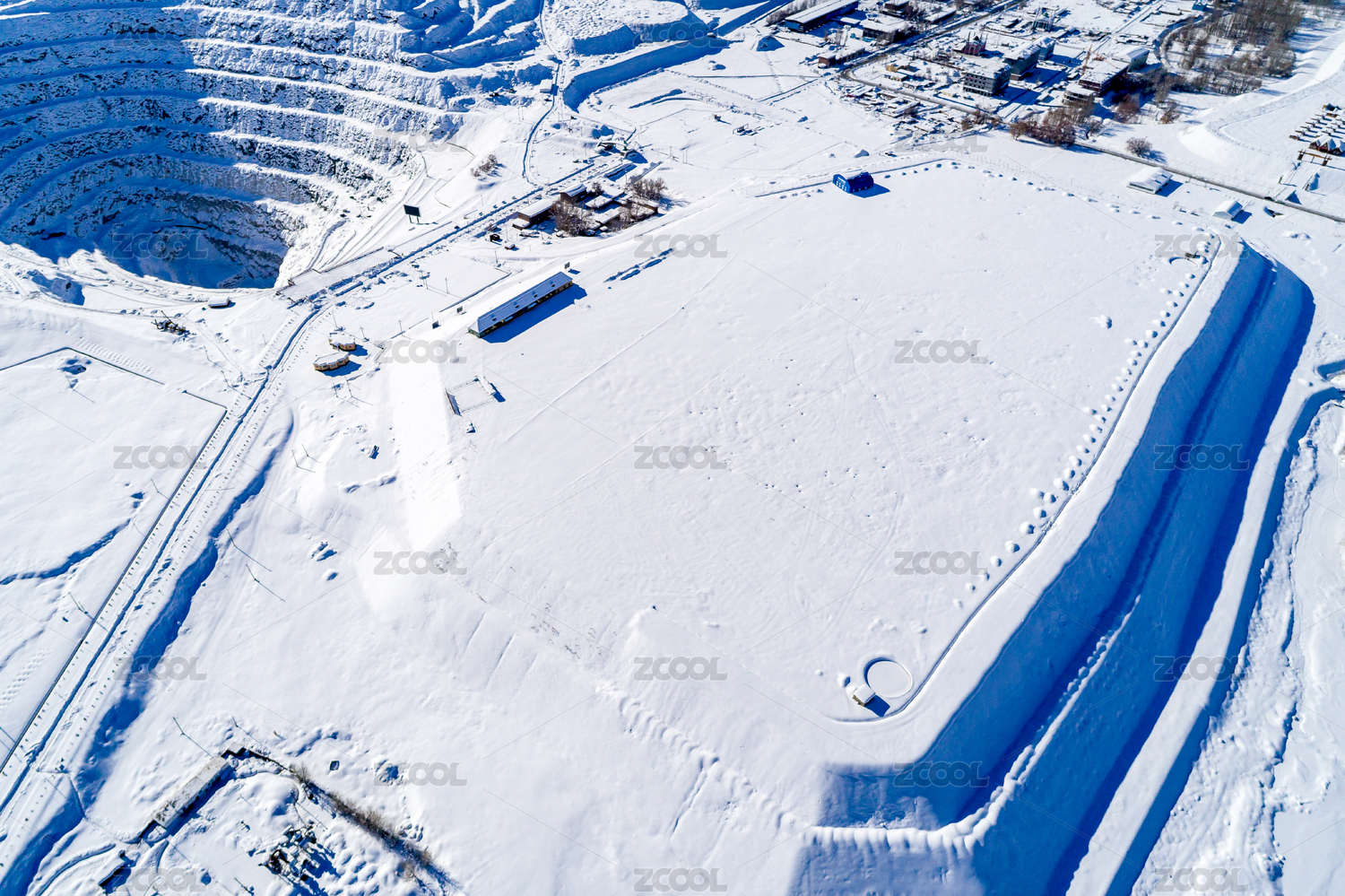冬天的中國新疆礦產(chǎn)開采聚集區(qū)航拍