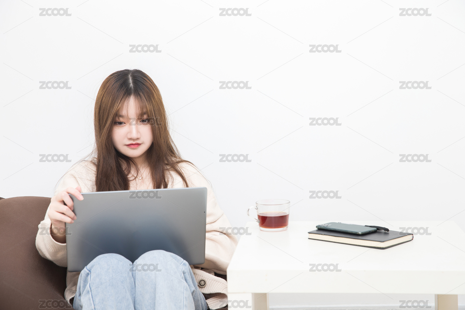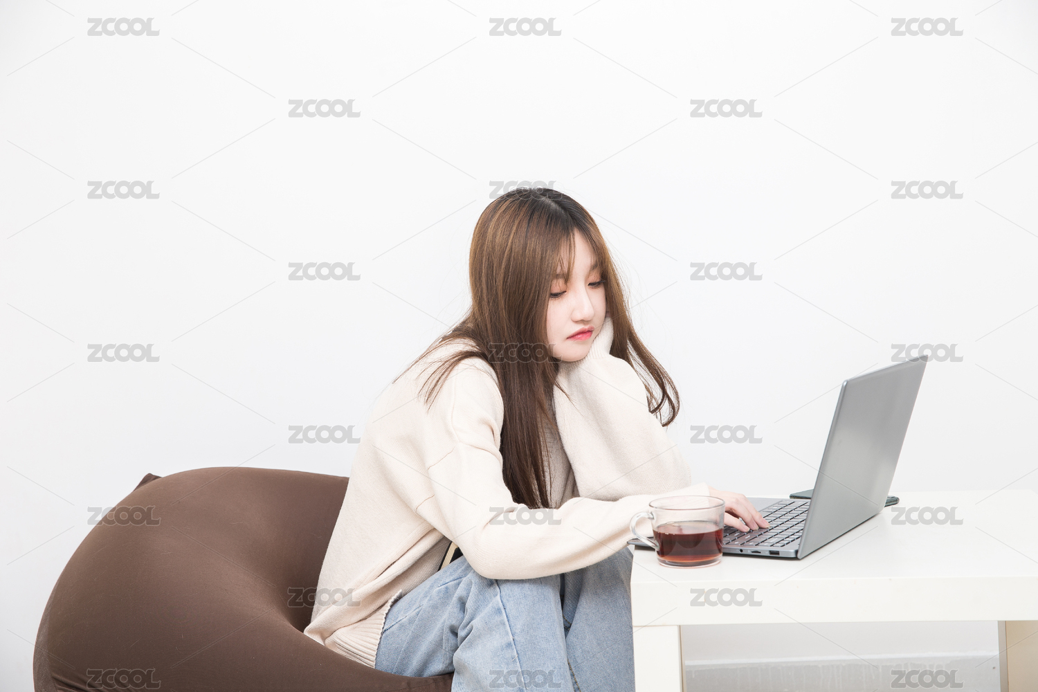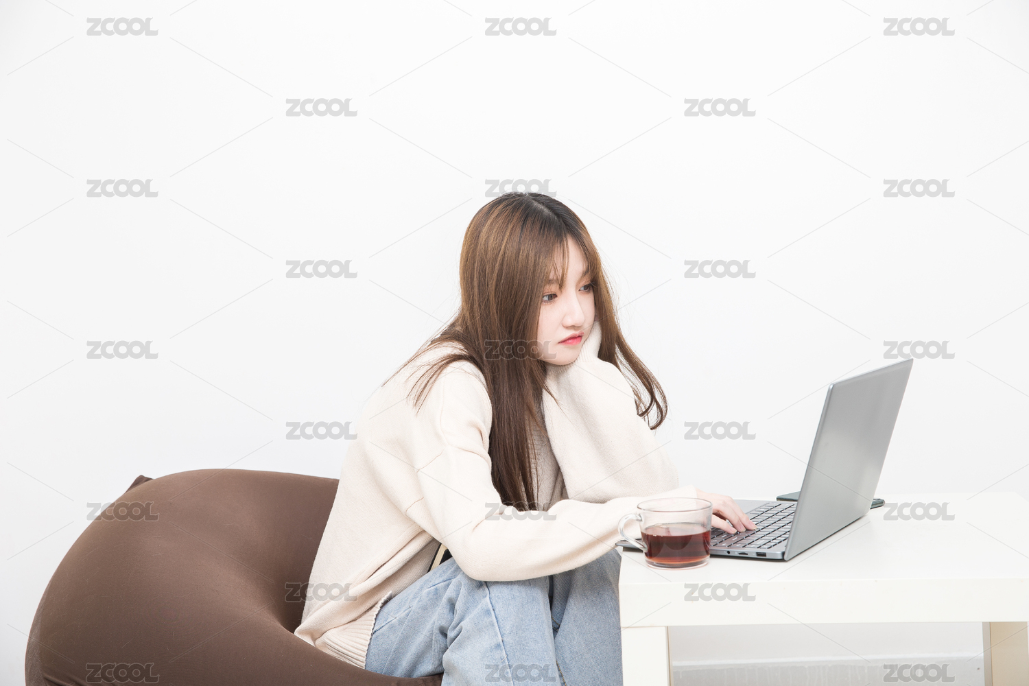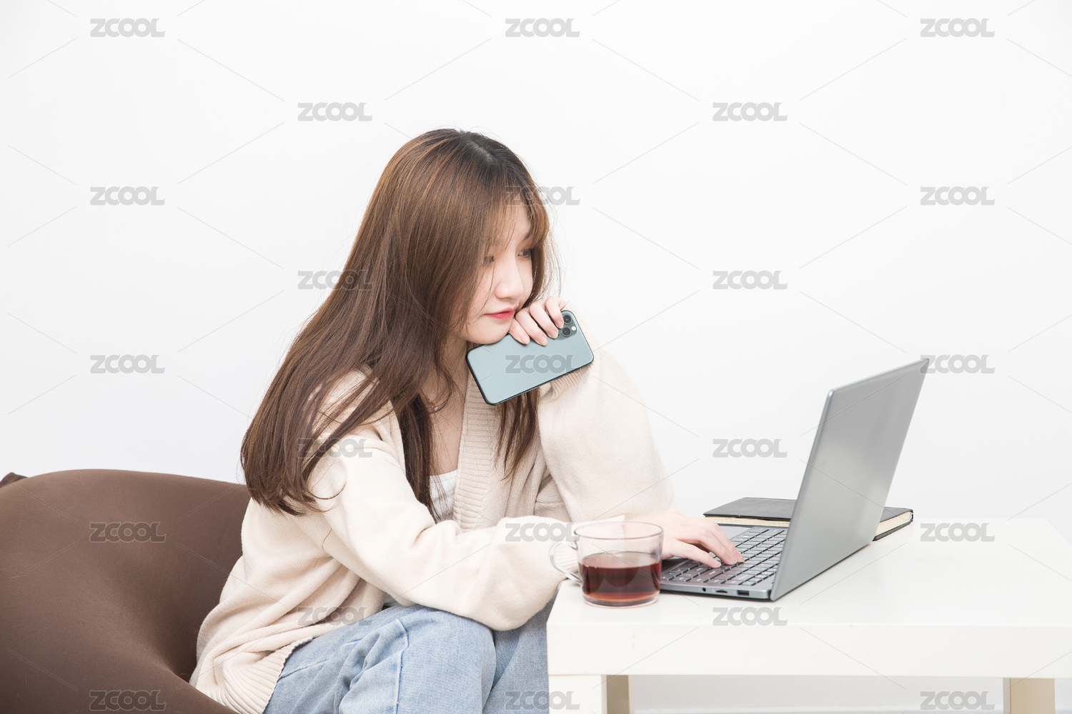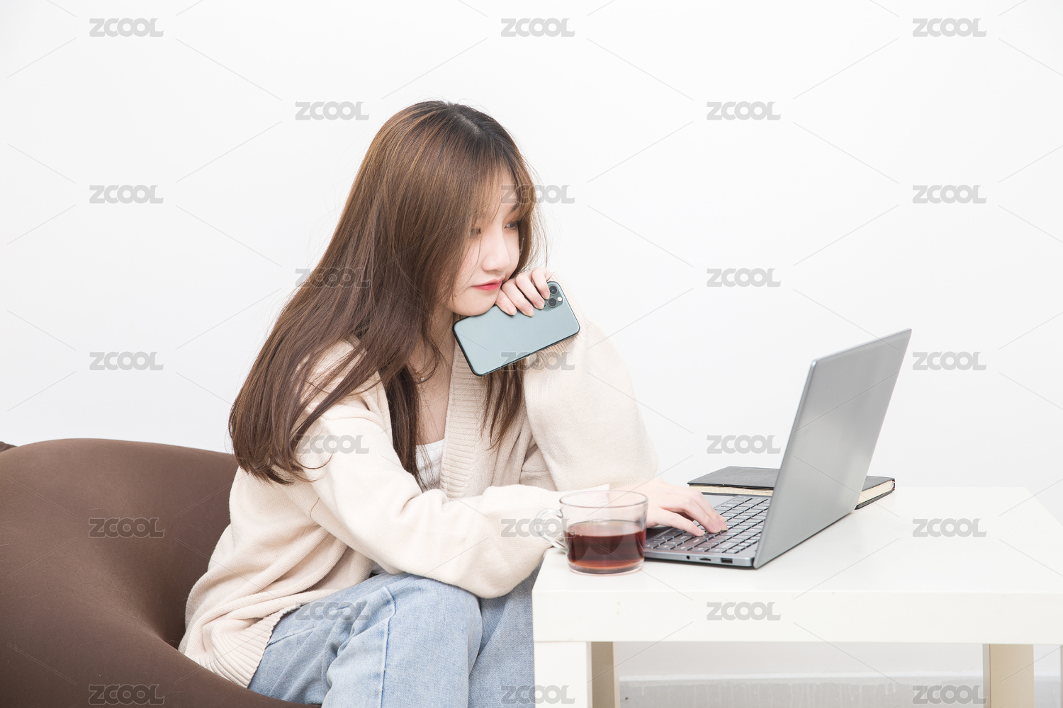 在室內(nèi)云上課的女學(xué)生,云辦公商務(wù)人像。