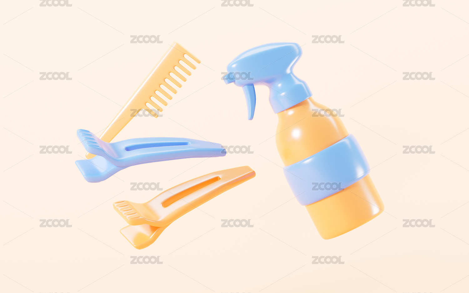 卡通發(fā)夾美容美發(fā)主題3D渲染
