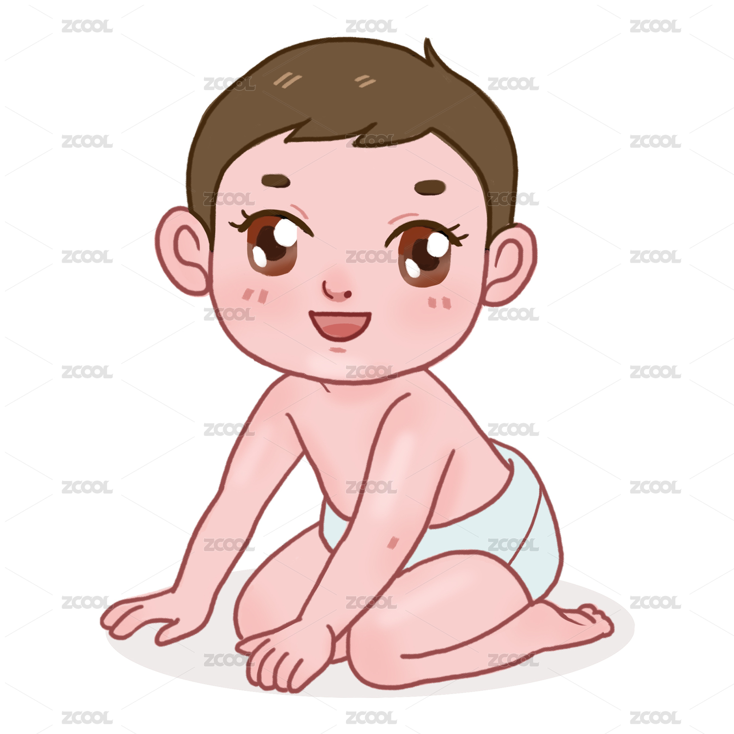 一個可愛的嬰兒穿著尿布坐在地上 手繪插畫