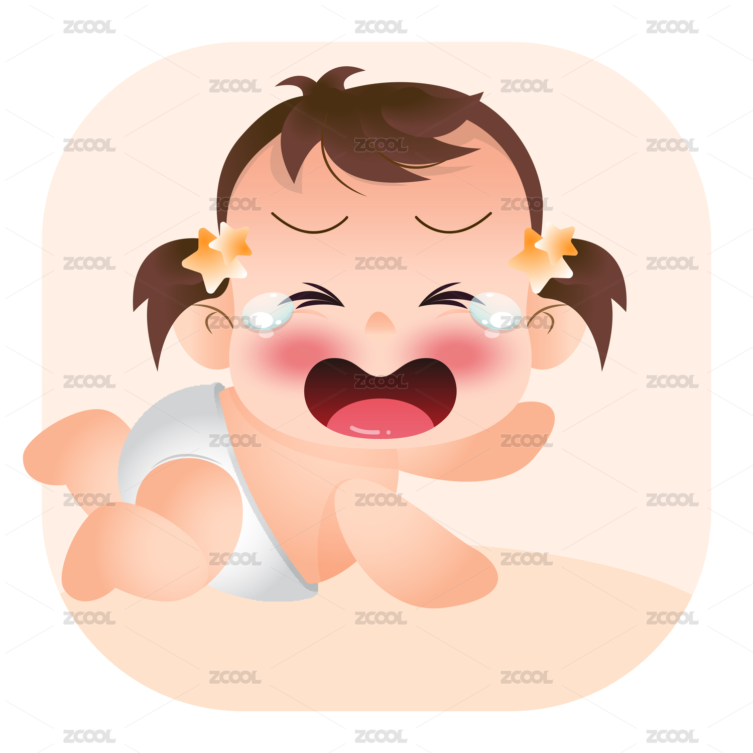 穿著尿布濕紙尿褲大哭發(fā)脾氣的嬰兒寶寶