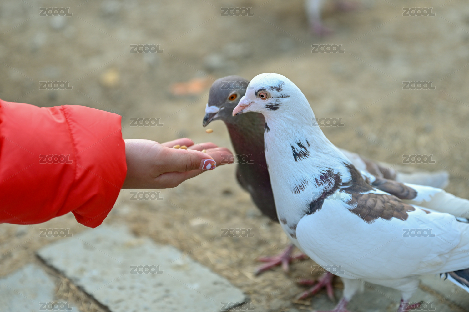 一只手喂鴿子