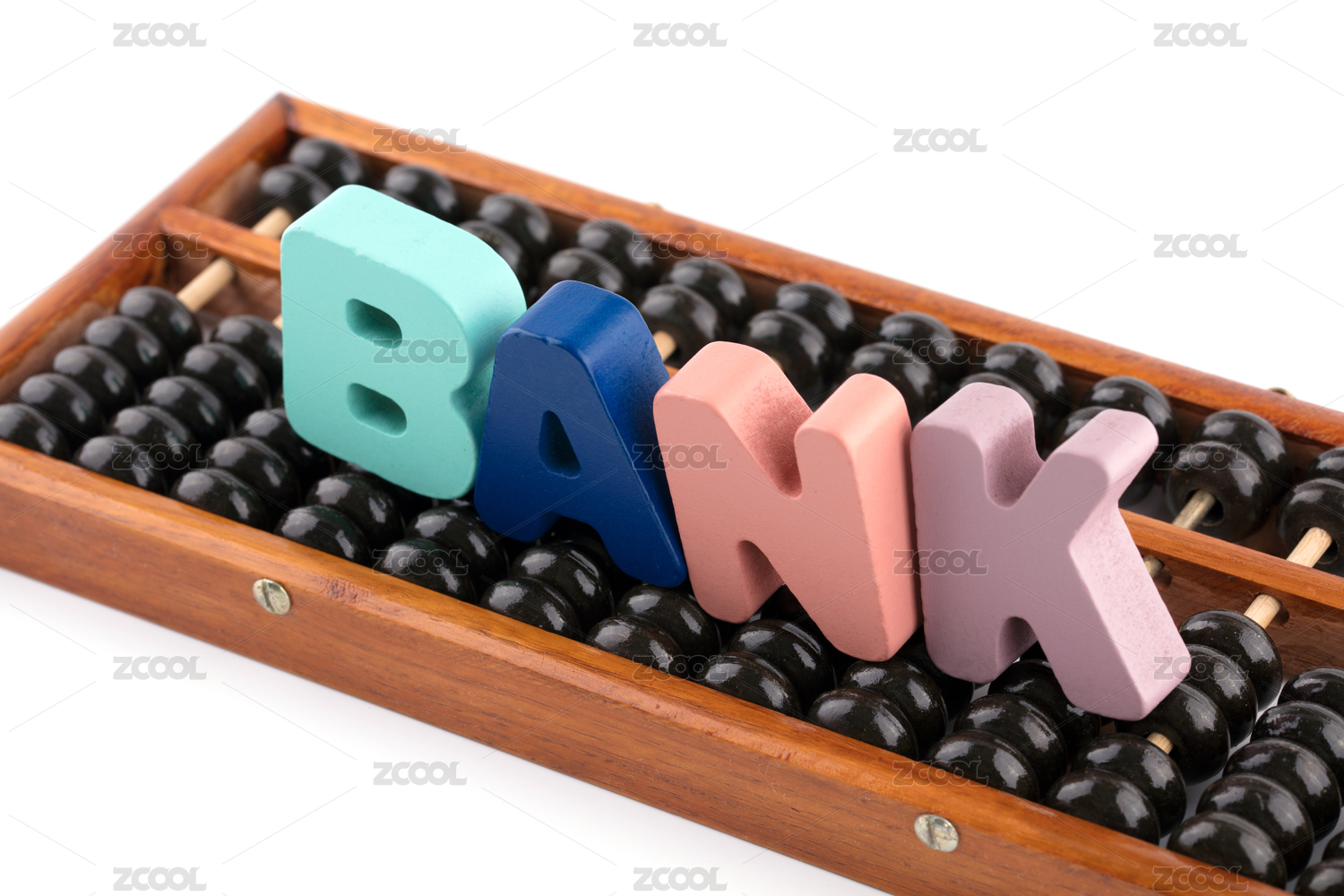 中國算盤和上面的英文單詞bank