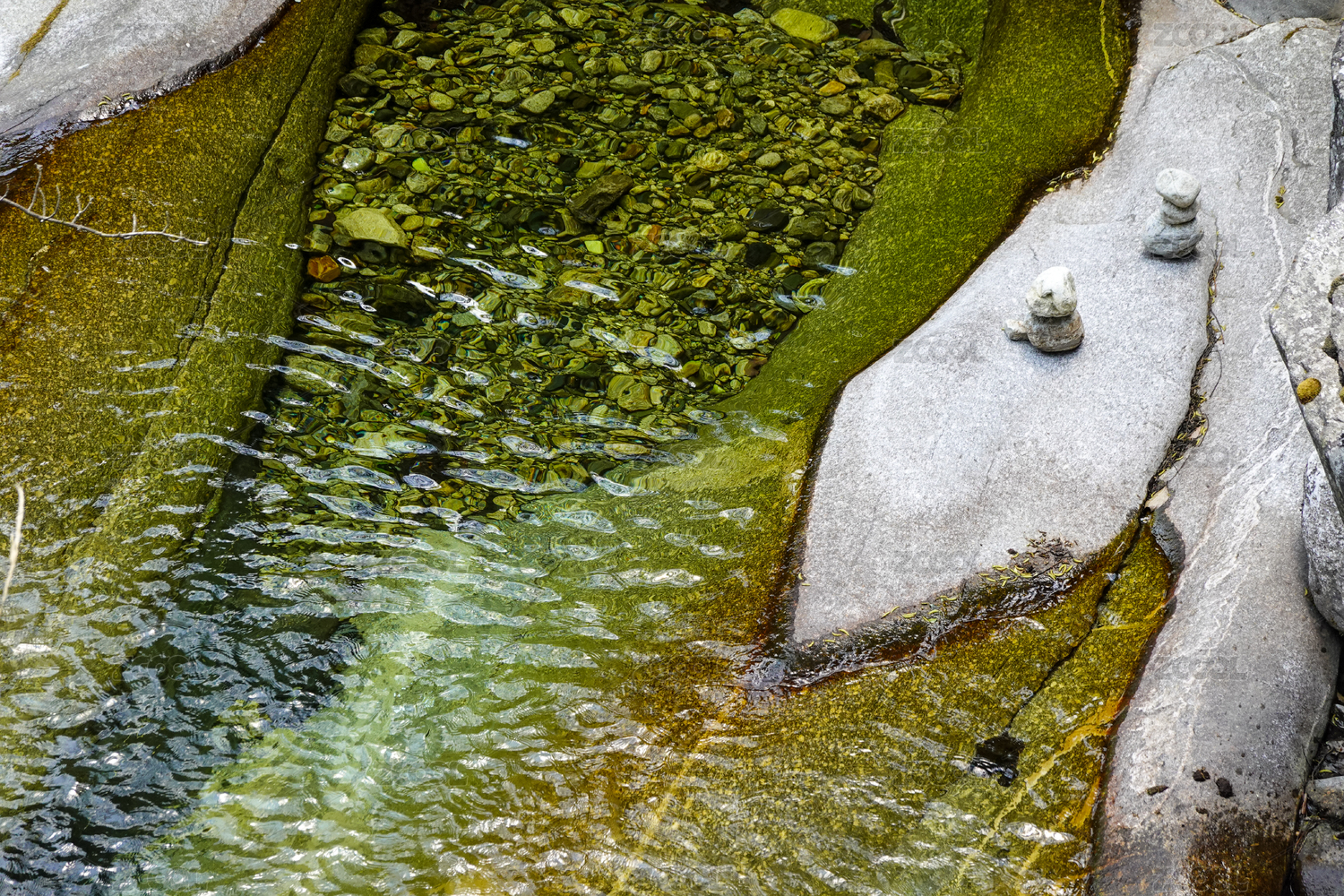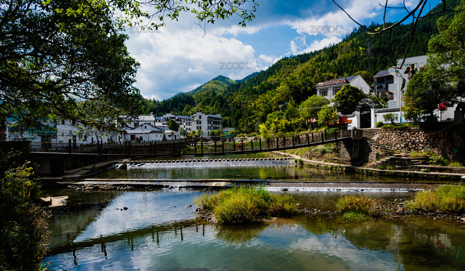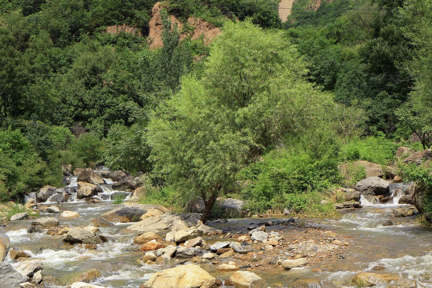 山林間溪流與巖石綠樹(shù)的自然景觀