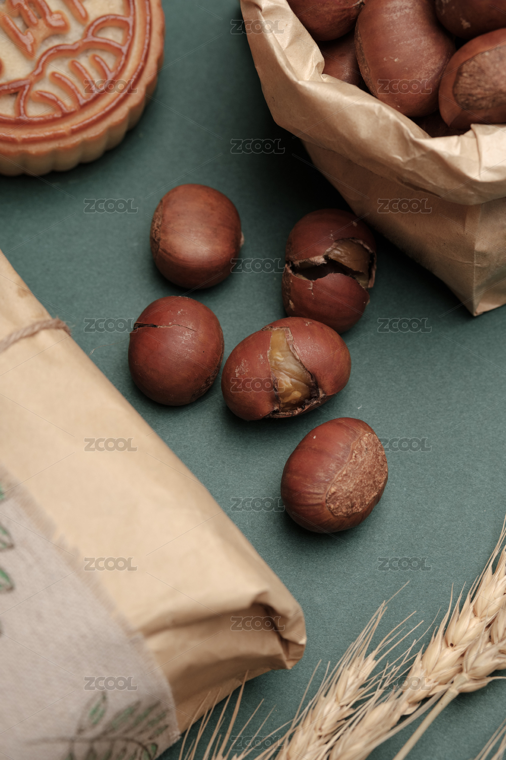 寶石綠背景月歷包裹信封麥穗板栗中秋月餅