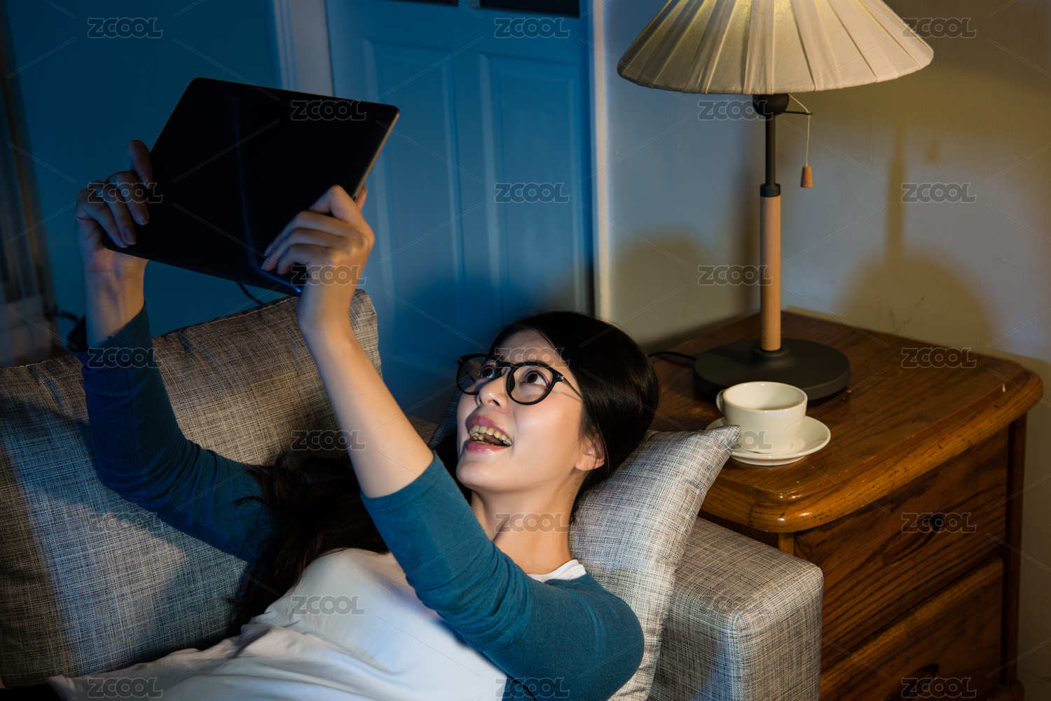 用大數(shù)字平板電腦海外日常生活中讀書的時(shí)候,晚上躺在沙發(fā)上的facetime與家人混血亞洲的中國(guó)學(xué)生。