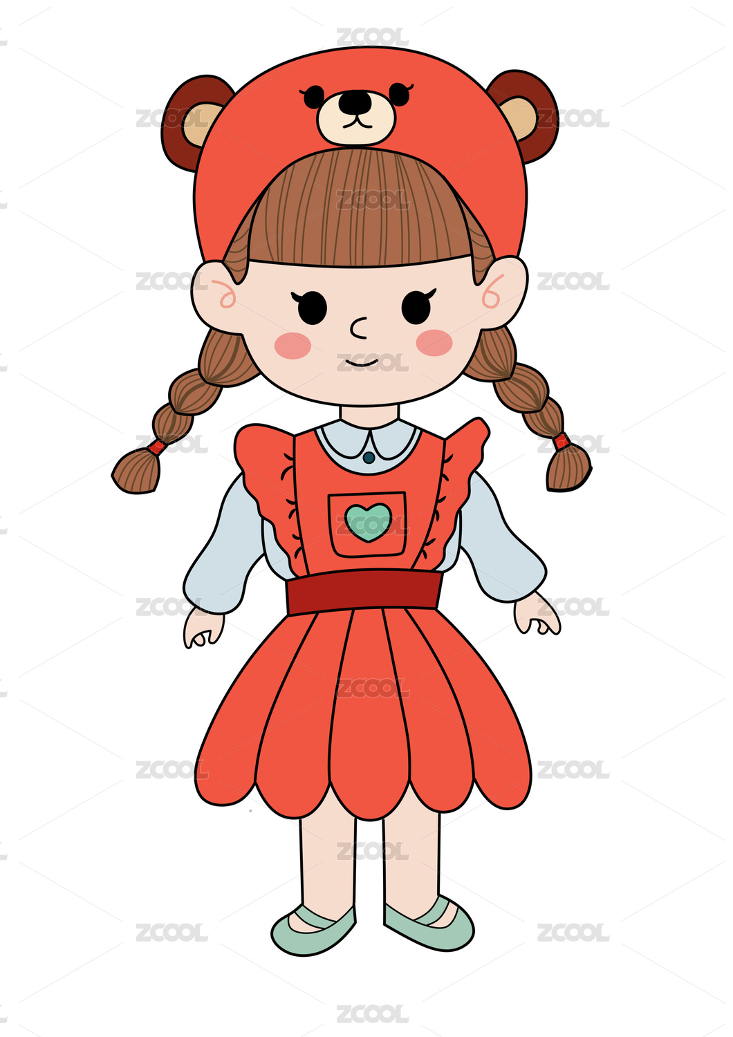可愛雙馬尾女孩穿著紅裙子