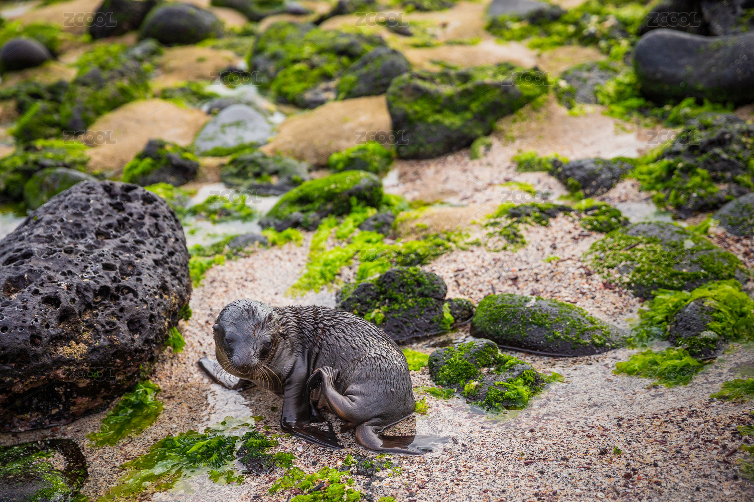 南美厄瓜多爾加拉帕戈斯群島的幼海獅