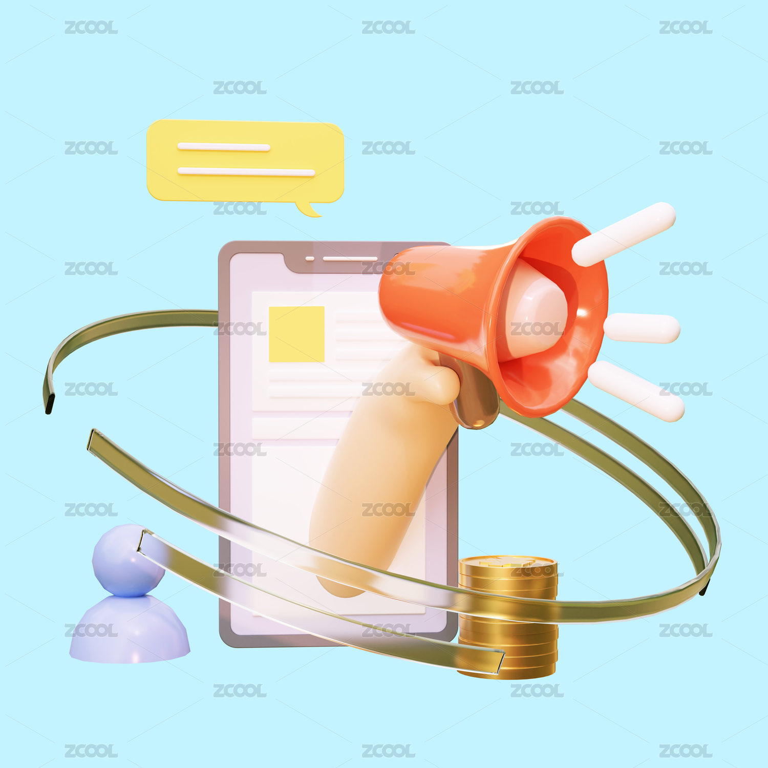 3D圖標(biāo)場(chǎng)景手機(jī)移動(dòng)手拿喇叭發(fā)布通知對(duì)話