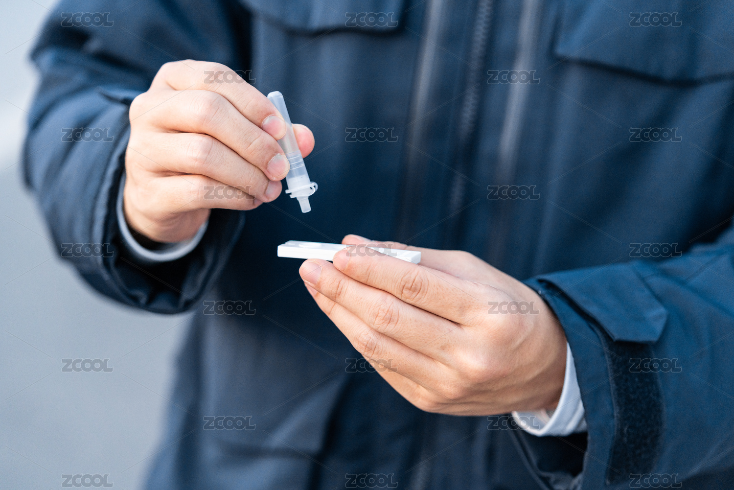 亞洲男性正在進(jìn)行抗原檢測(cè)