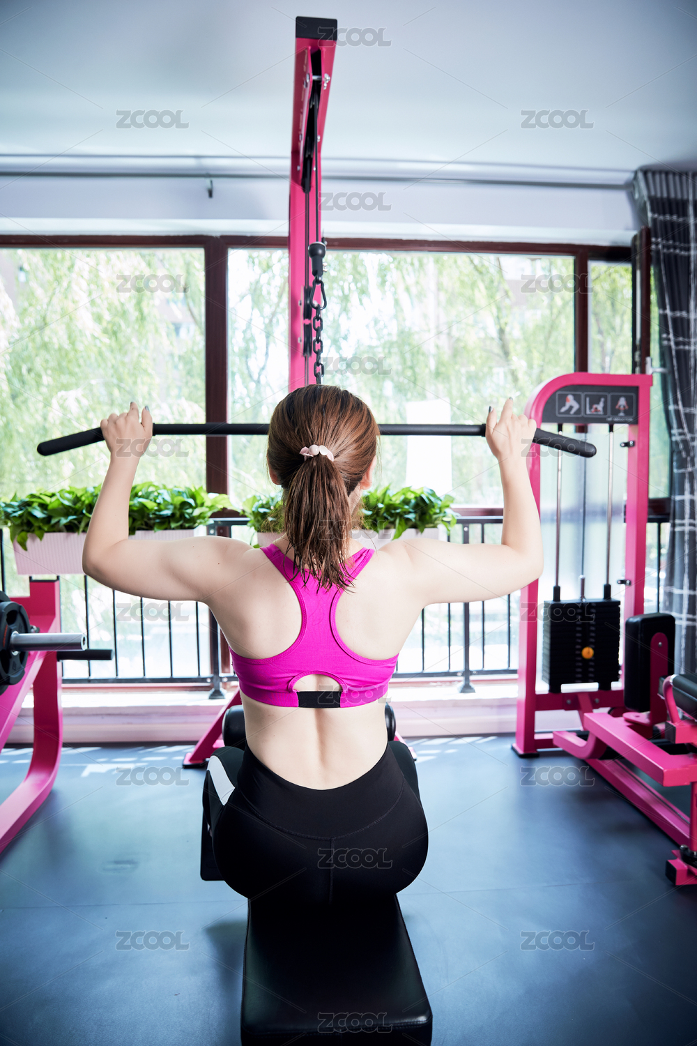 在健身房使用健身器械的亞洲女性