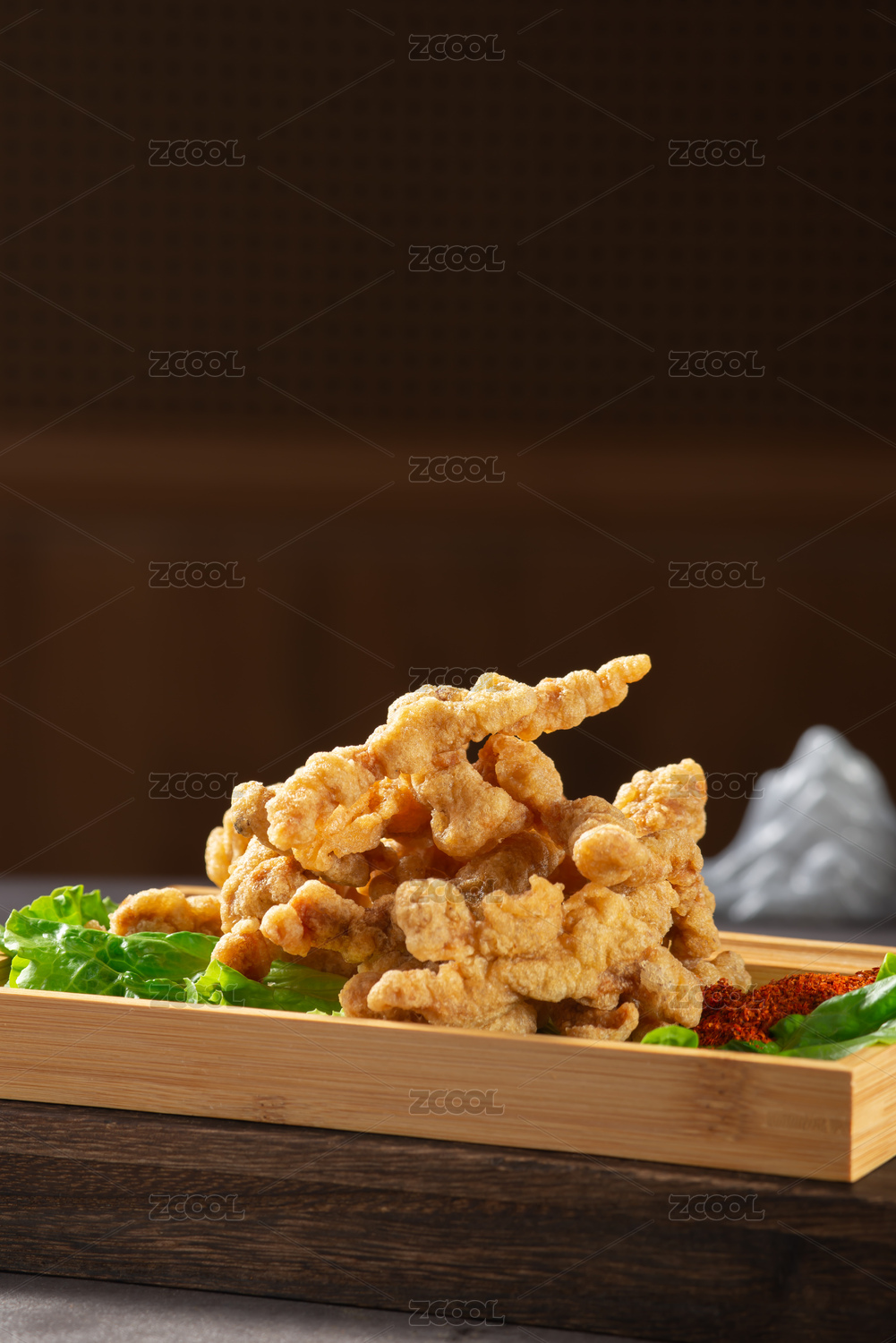 木紋桌上圓盤(pán)里的現(xiàn)炸酥肉